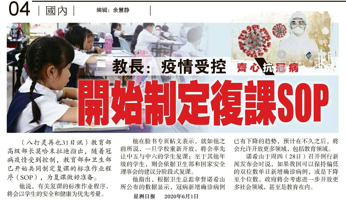 教长:疫情受控 开始制定复课SOP
