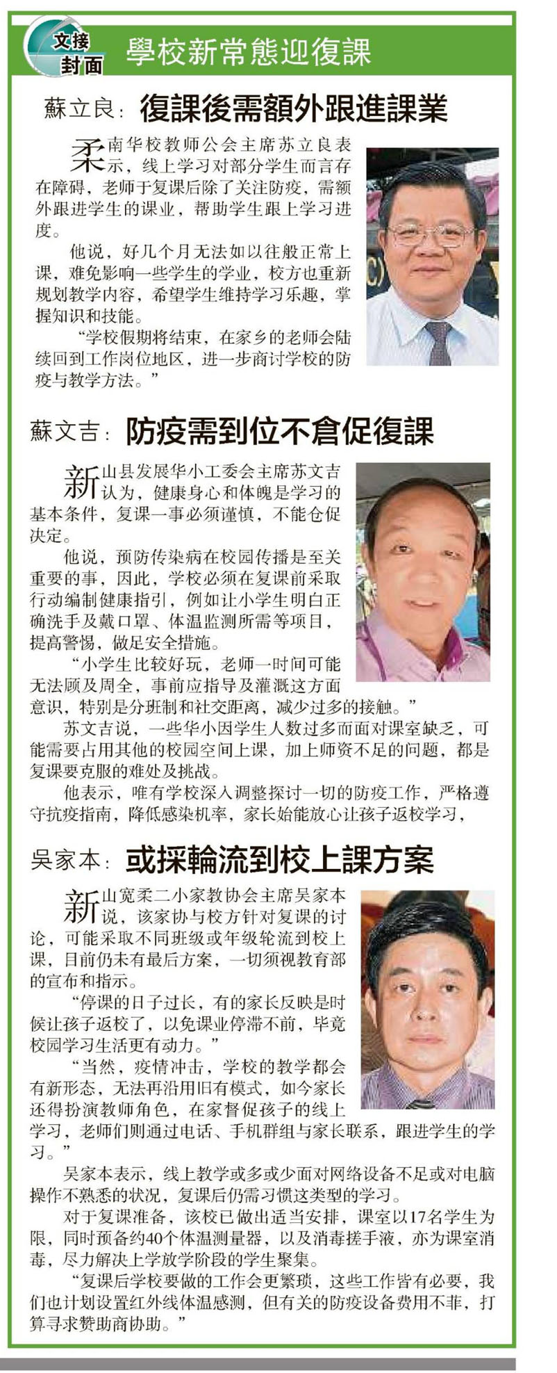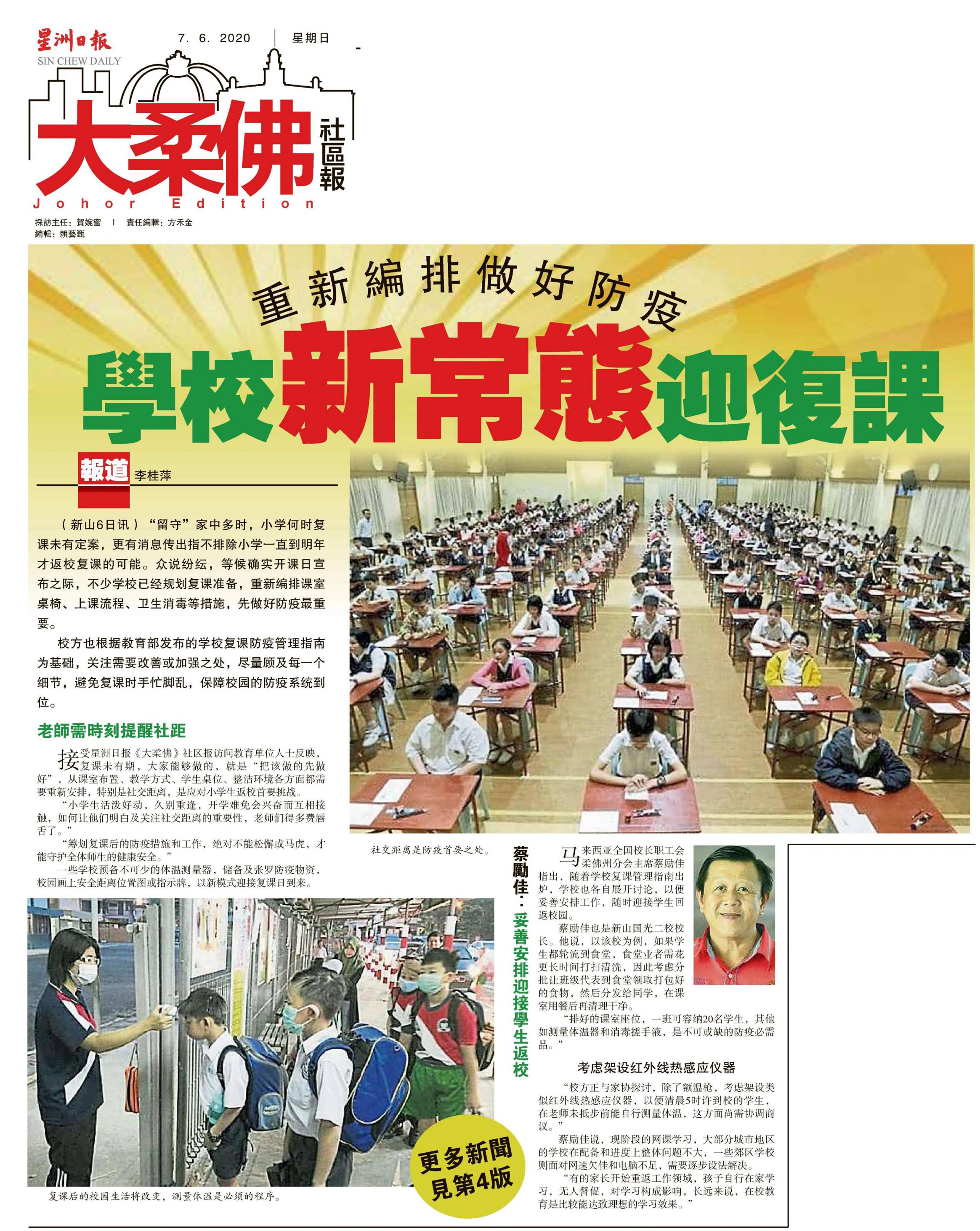 重新编排做好防疫 学校新常态迎复课