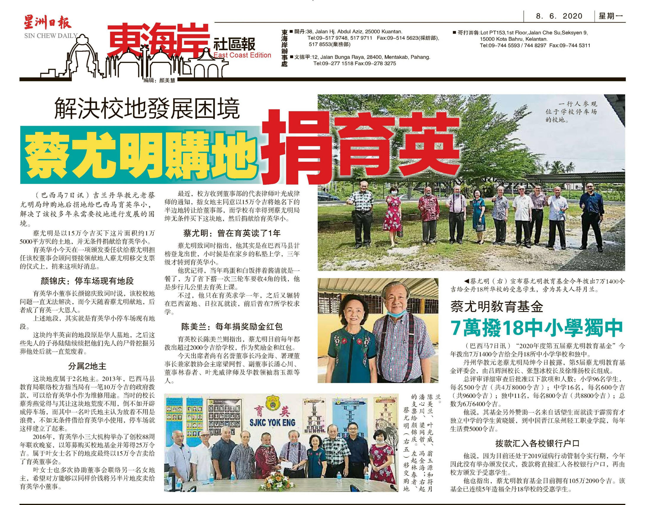 解决校地发展困境 蔡尤明购地捐育英