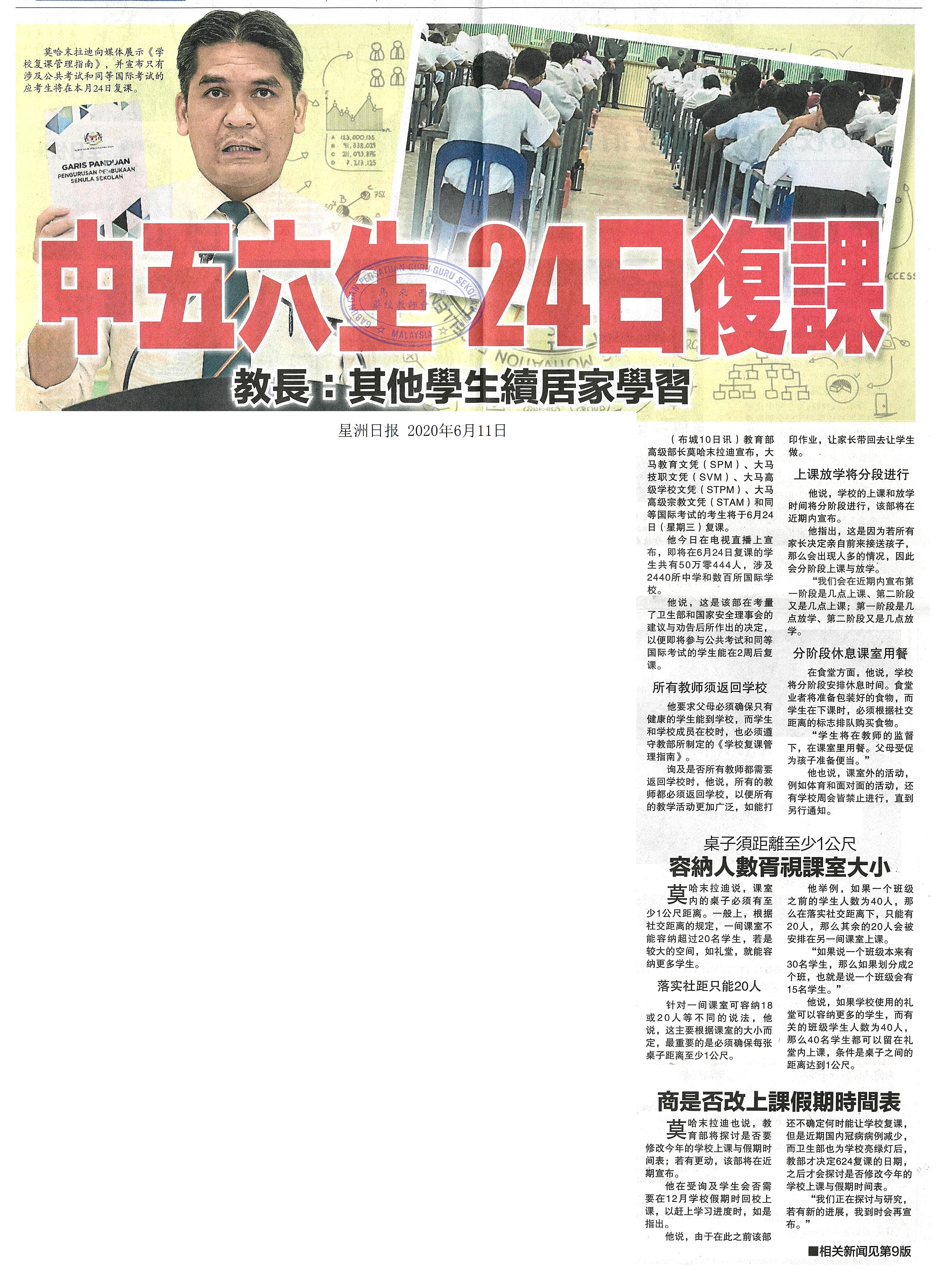 中五六生24日复课 教长:其他学生续居家学习