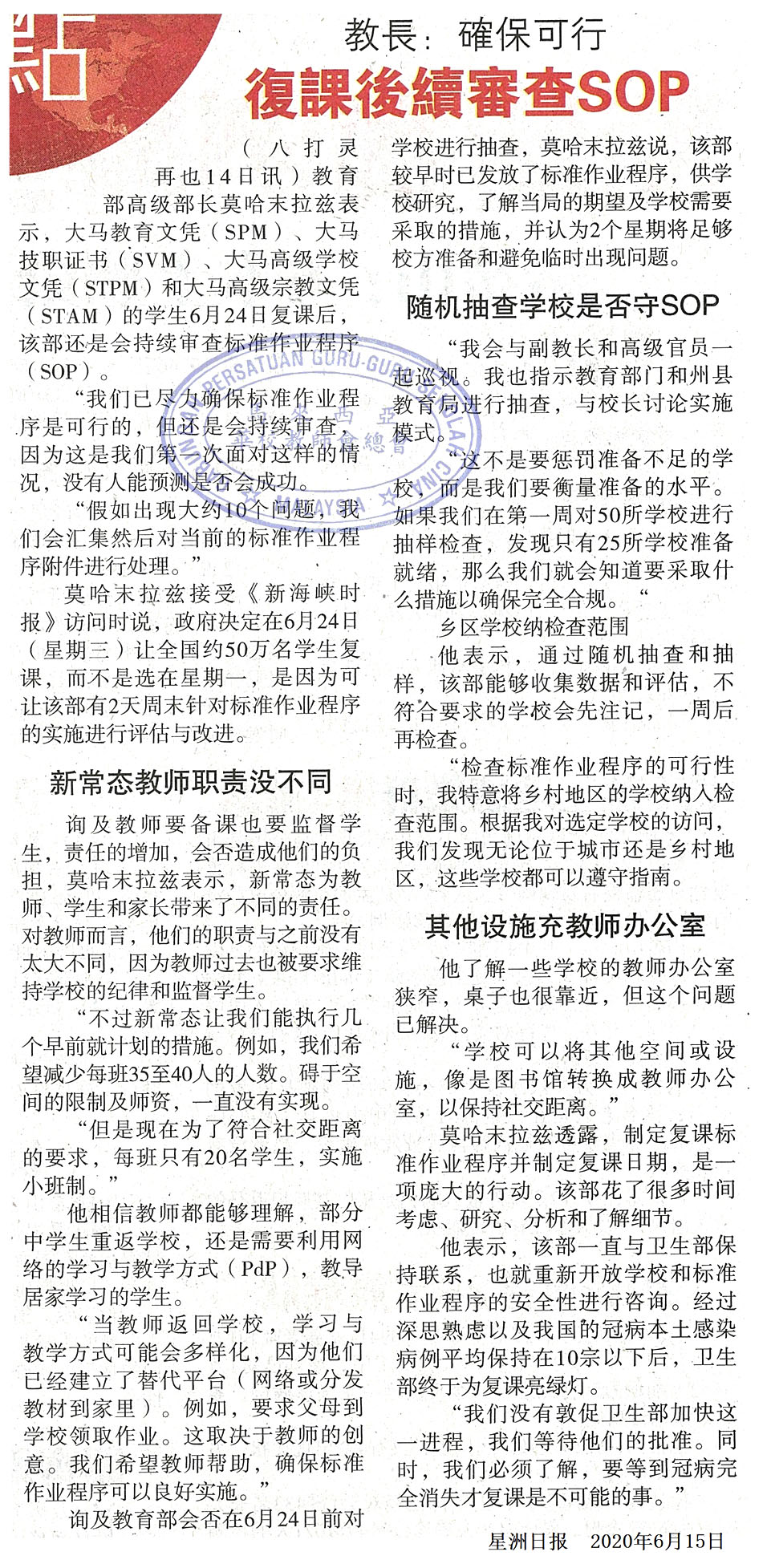 教长:确保可行 复课后续审查SOP