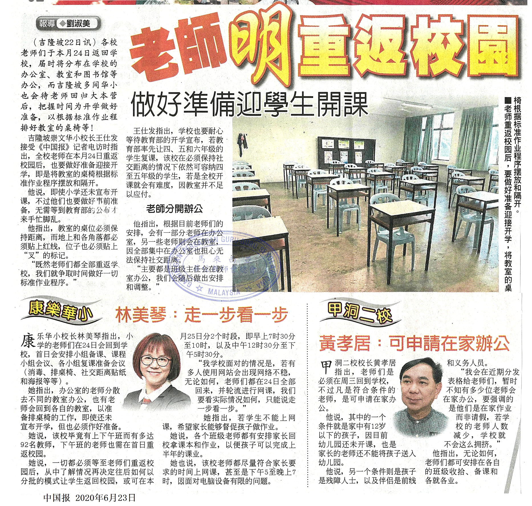 老师明重返校园 做好准备迎学生开课