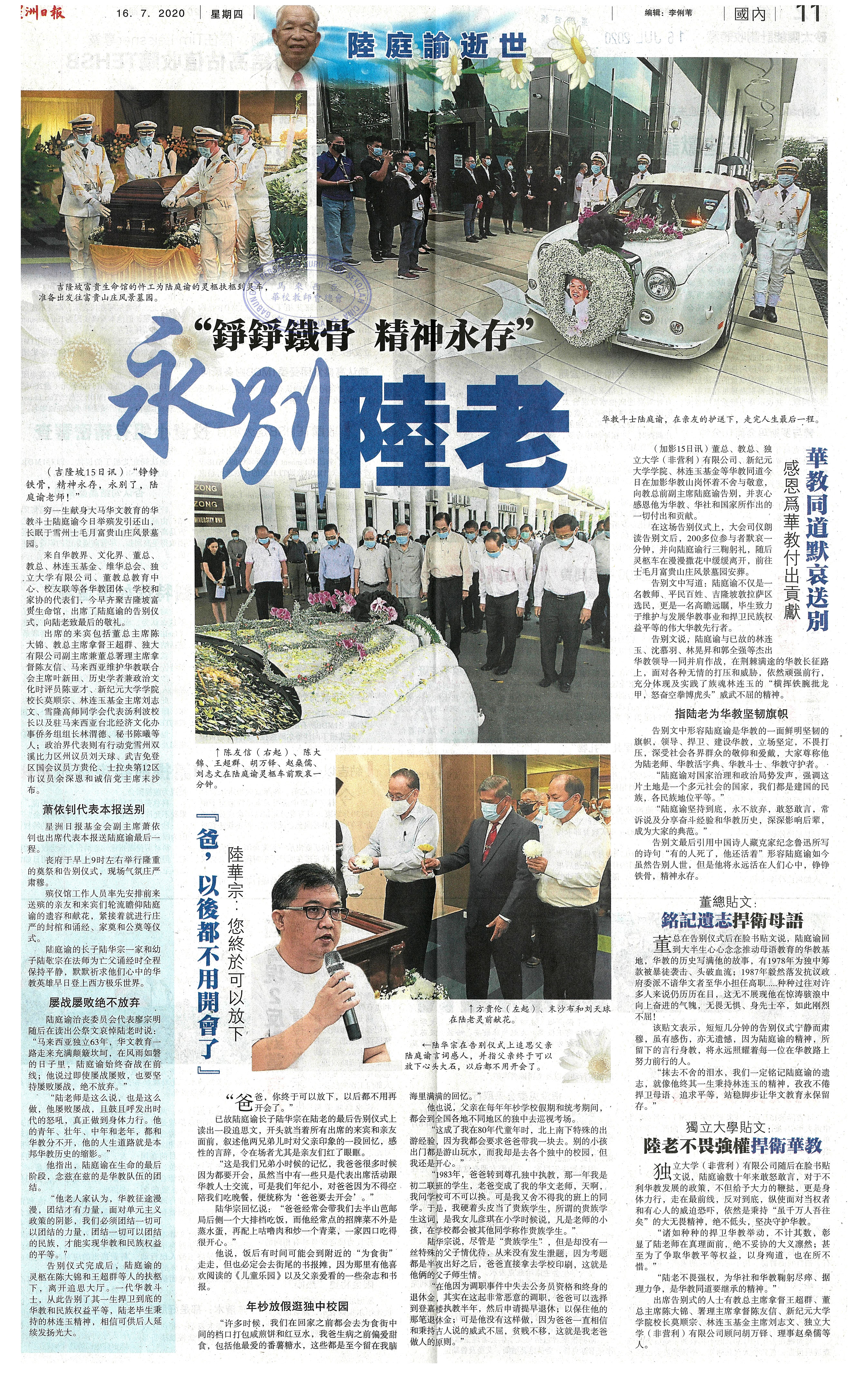“铮铮铁骨 精神永存” 永别陆老
