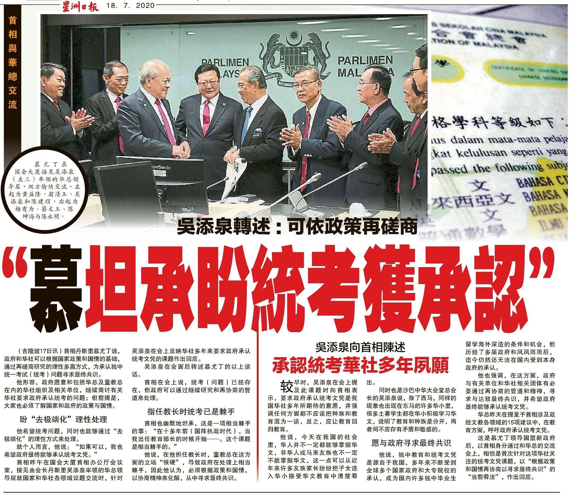 吴添泉转述:可依政策再磋商“慕坦承盼统考获承认”
