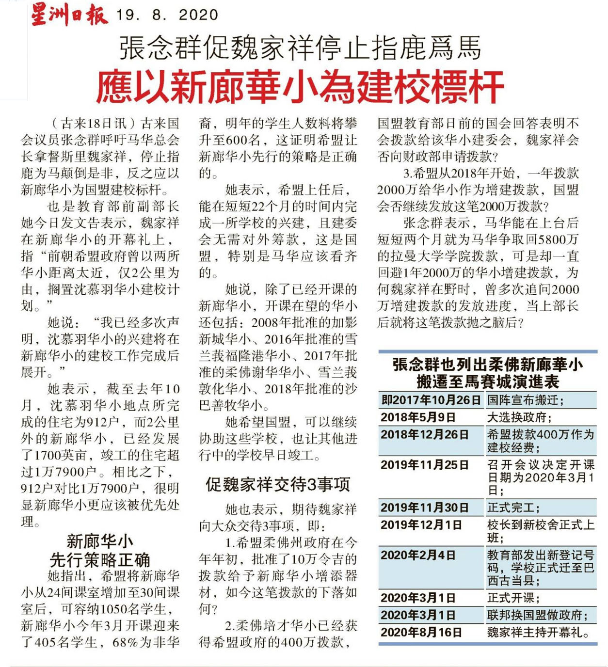 张念群促魏家祥停止指鹿为马 应以新廊华小为建校标杆