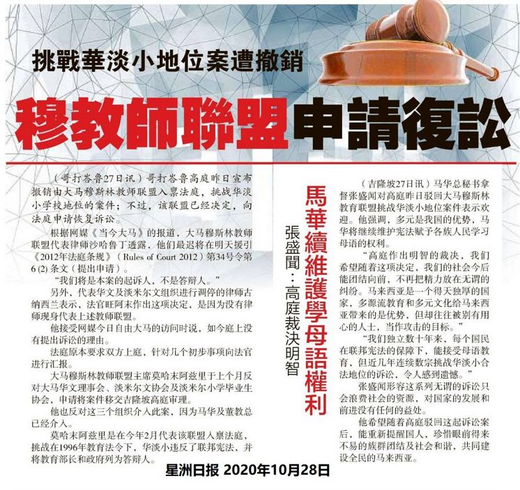 挑战华淡小地位案遭撤销 穆教师联盟申请复讼