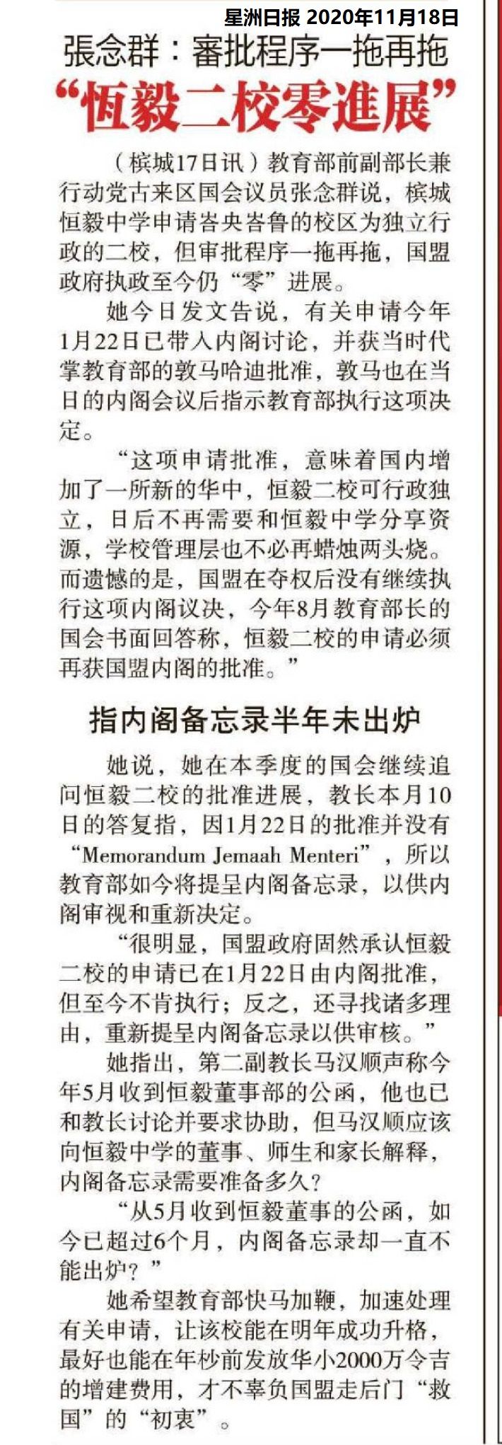 张念群:审批程序一拖再拖 恒毅二校零进展 WhatsApp 上一篇文章: 教长:截止11月供政府资助学校 拨4158万付水电费排污费 上一页 下一篇文章: 副教长:审查统考报告框架 教部特委会将再开会 下一页