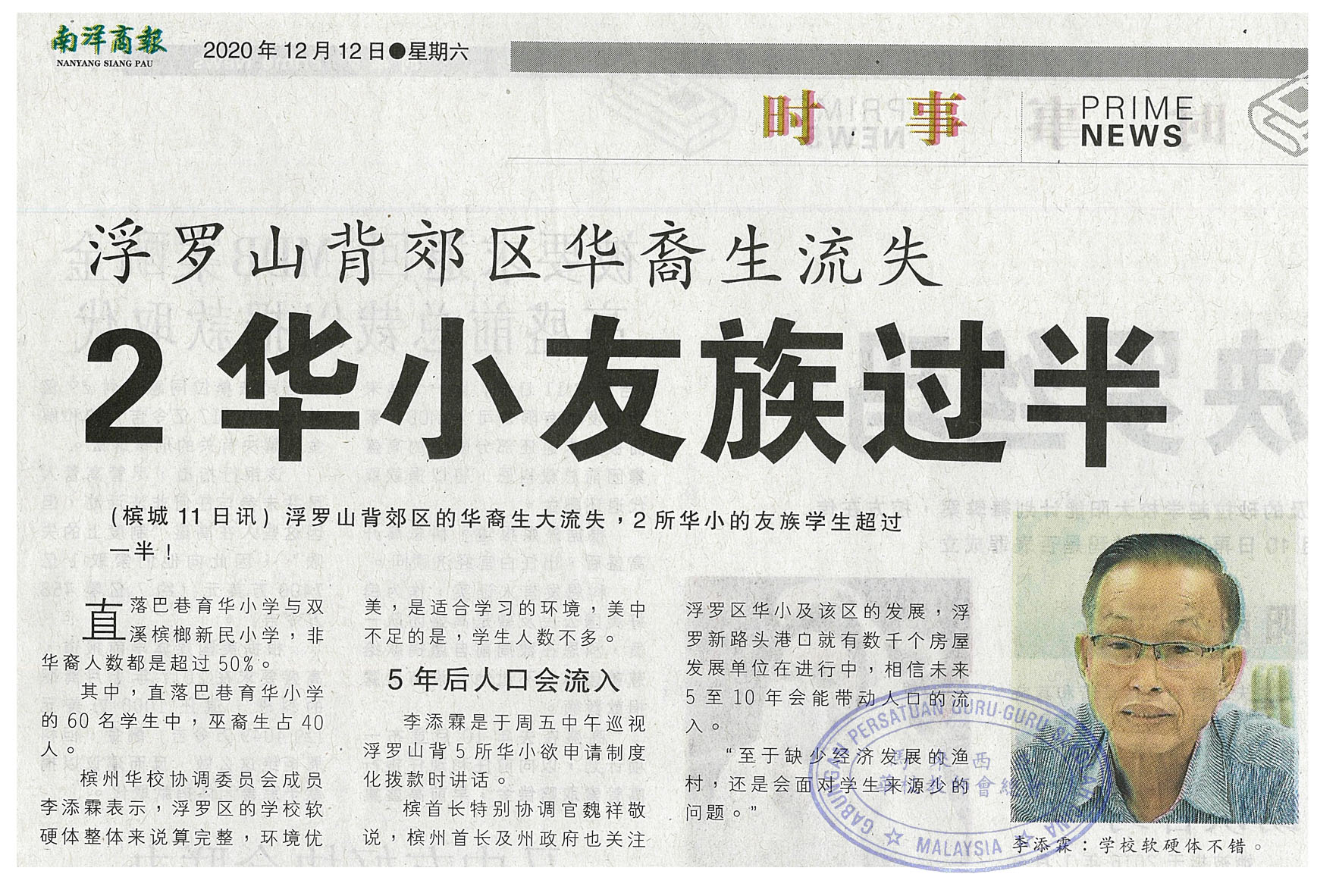 浮罗山背郊区华裔生流失 2华小友族过半