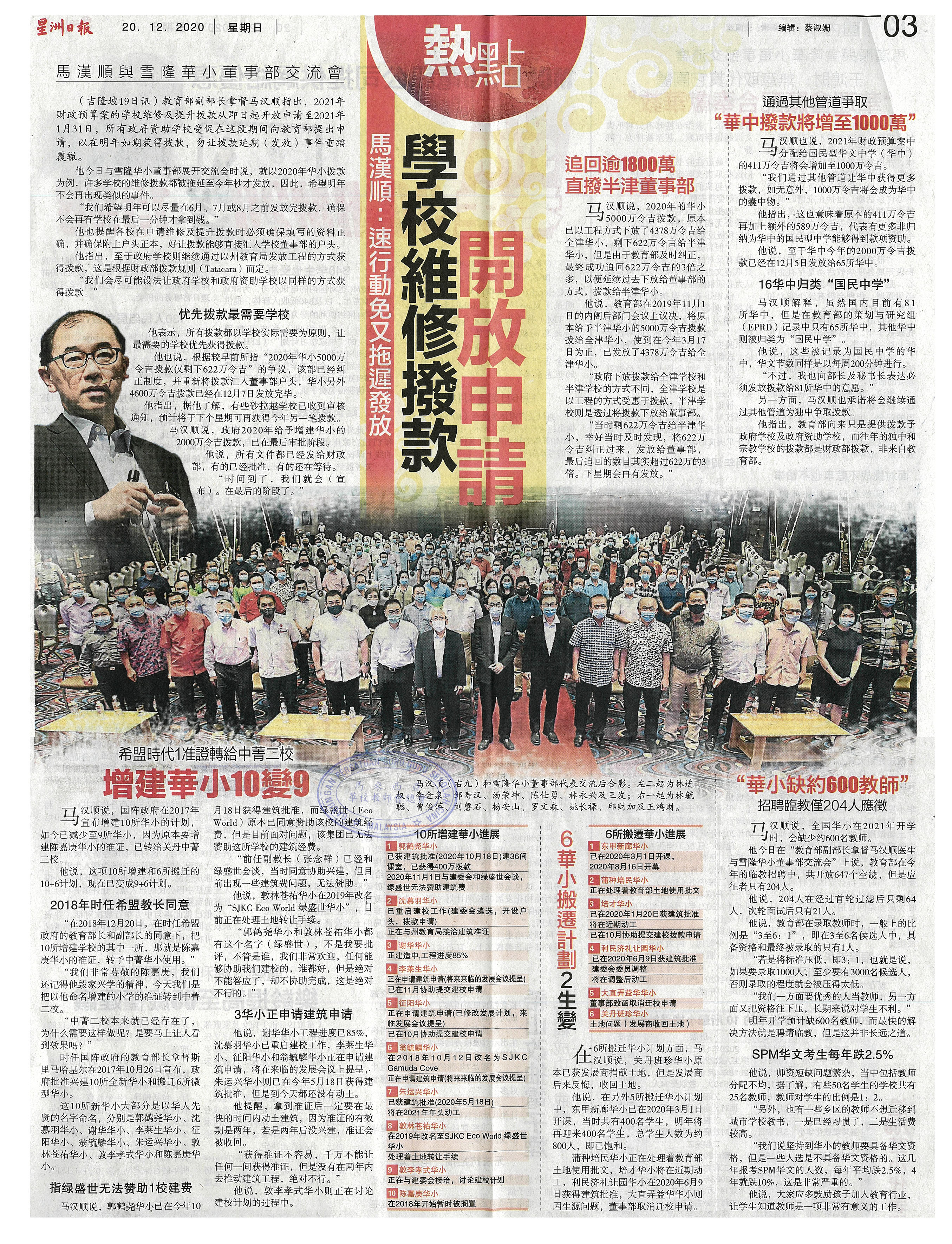 马汉顺:学校维修拨款开放申请 速行动免又拖迟发放 WhatsApp 上一篇文章: 马汉顺:雪敦化华小虽完工 面对发展商土地问题 上一页 下一篇文章: 马汉顺:建议推多元语文手册解争议 爪夷中淡文齐介绍 下一页