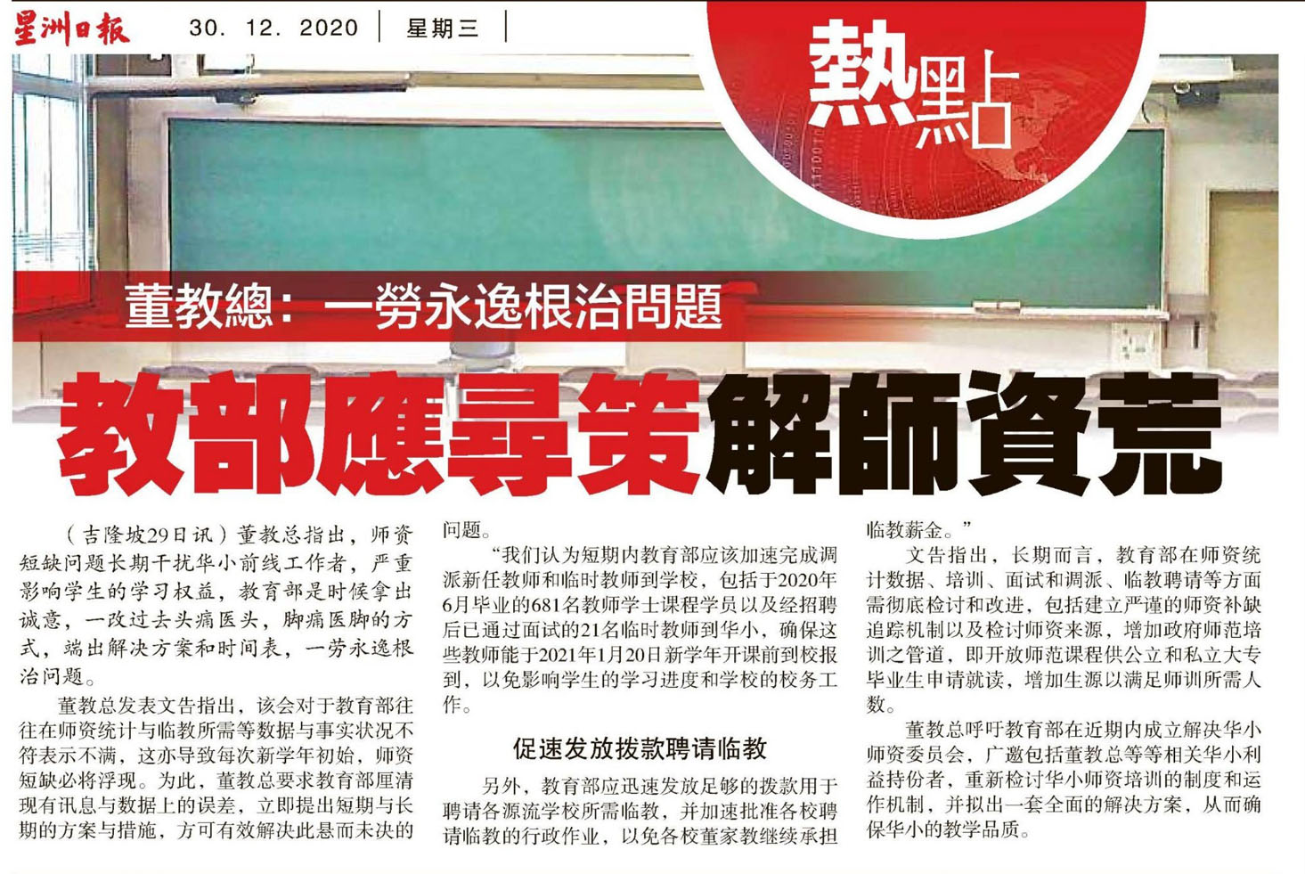 董教总:一劳永逸根治问题 教育部应寻策解师资荒