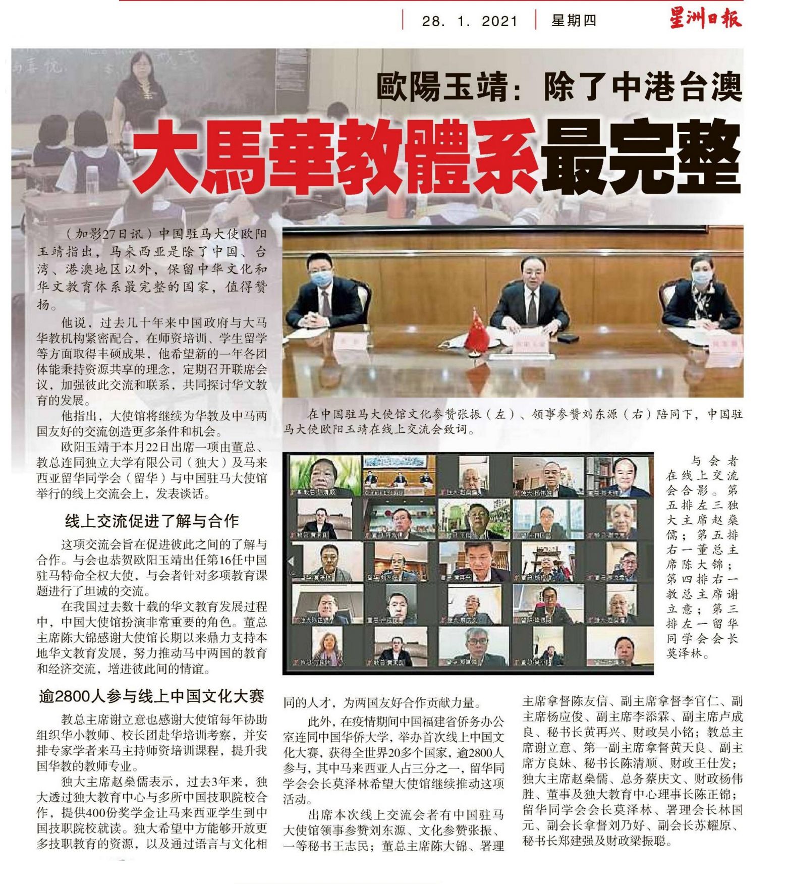 欧阳玉靖:除了中港台澳 大马华教体系最完整