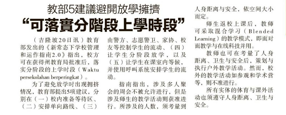 上一篇文章: 须穿校服或带考试单 跨州县上学不需批准信