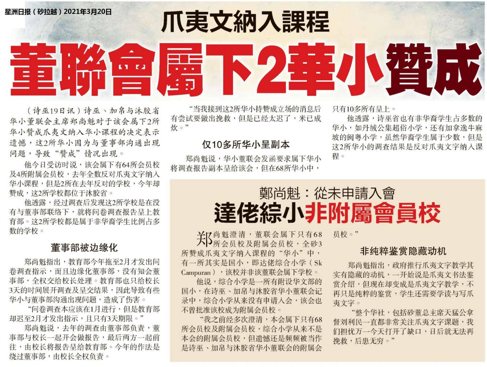 爪夷文纳入课程 董联会属下2华小赞成