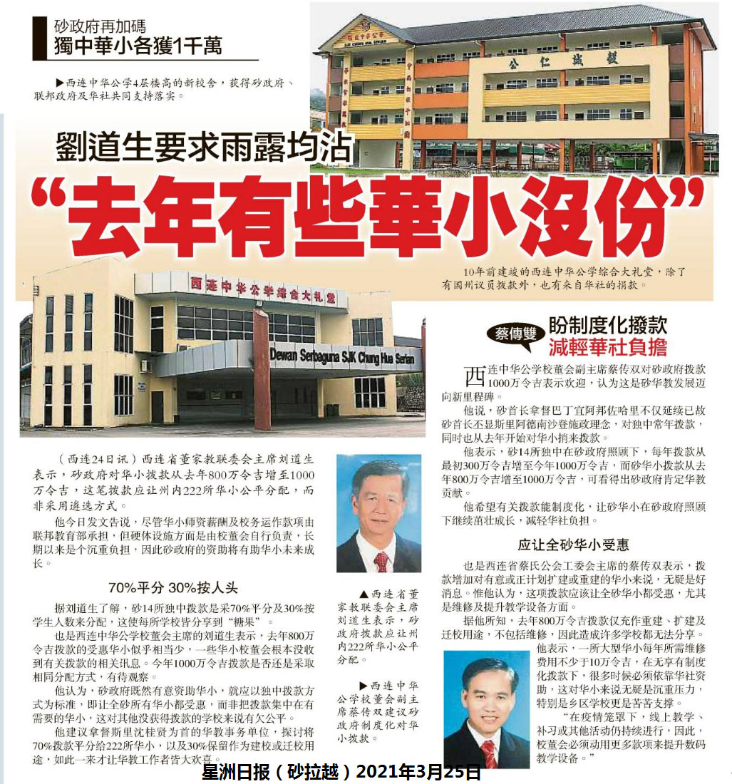 刘道生要求雨露均沾“去年有些华小没份”