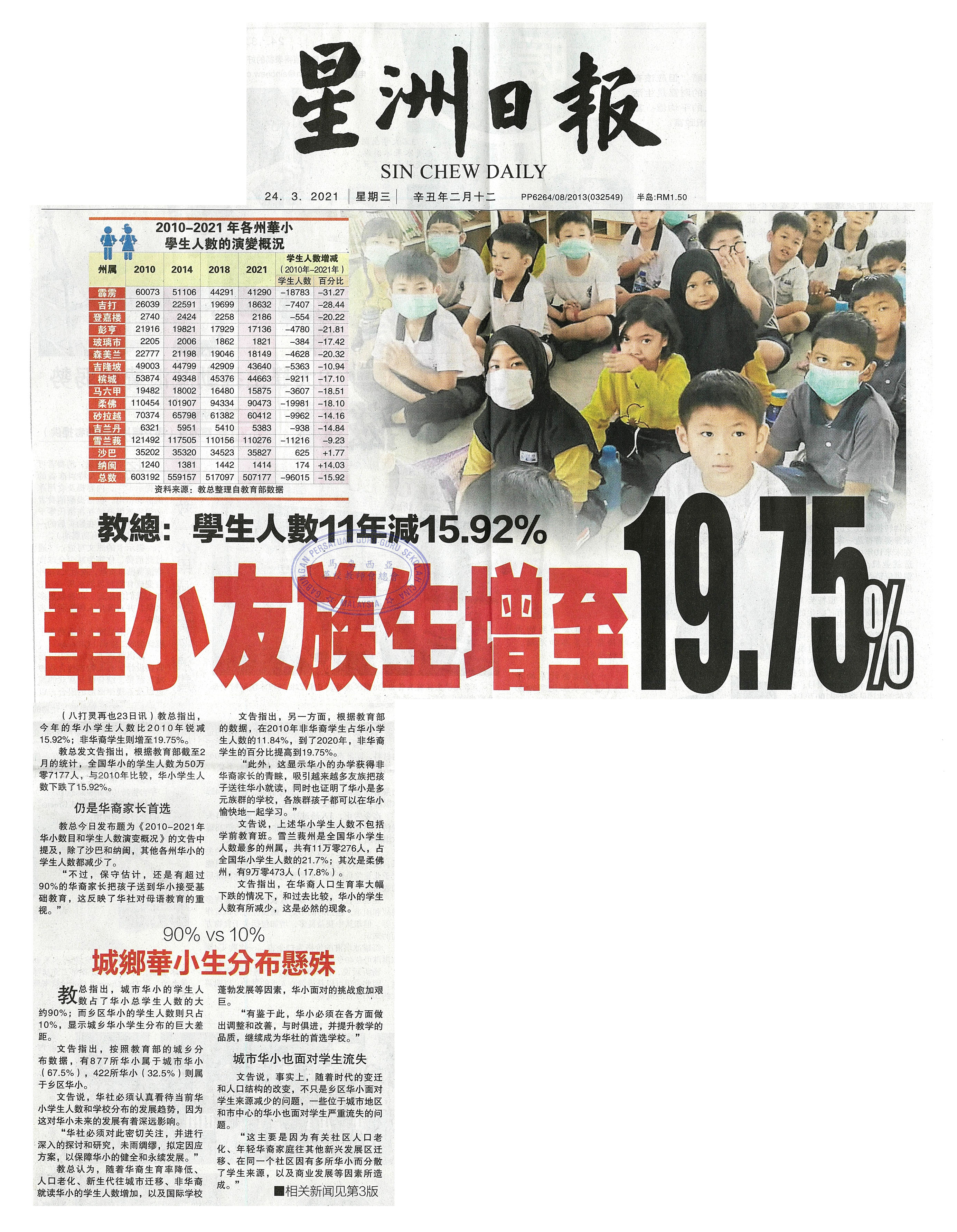 教总:学生人数11年减15.92% 华小友族生增至19.75% WhatsApp 上一篇文章: 教总:教育部3年前批准 柔雪增建10华小停滞 上一页 下一篇文章: 校长职工会促下放权力 “是否停课让校方上呈建议” 下一页