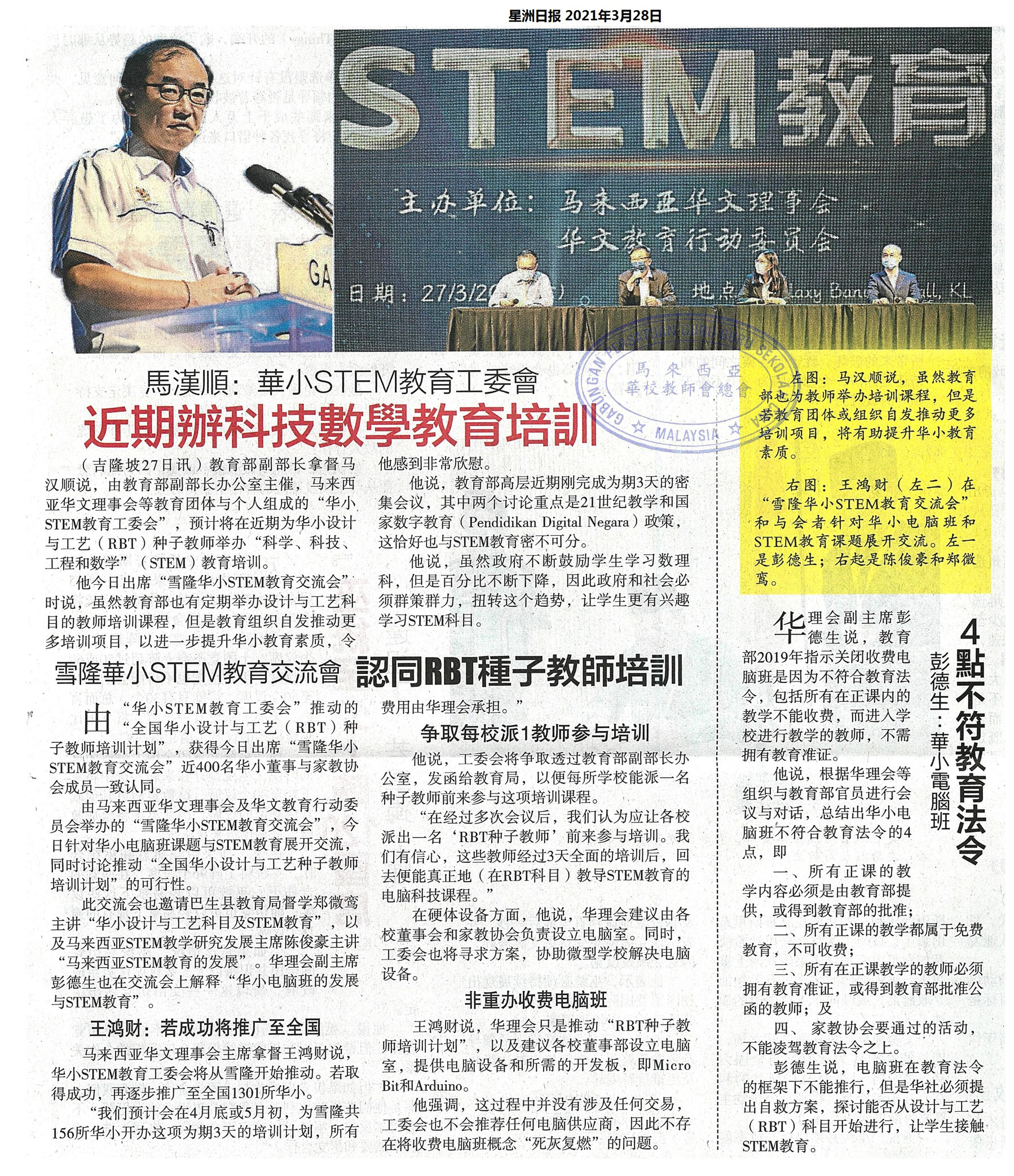 马汉顺:华小STEM教育工委会 近期办科技数学教育培训 WhatsApp 上一篇文章: 诗巫迁至三马拉汉 开南小学下半年招标动工 上一页 下一篇文章: 马汉顺:教育部1999至2017年 增建29华小 搬迁98 下一页