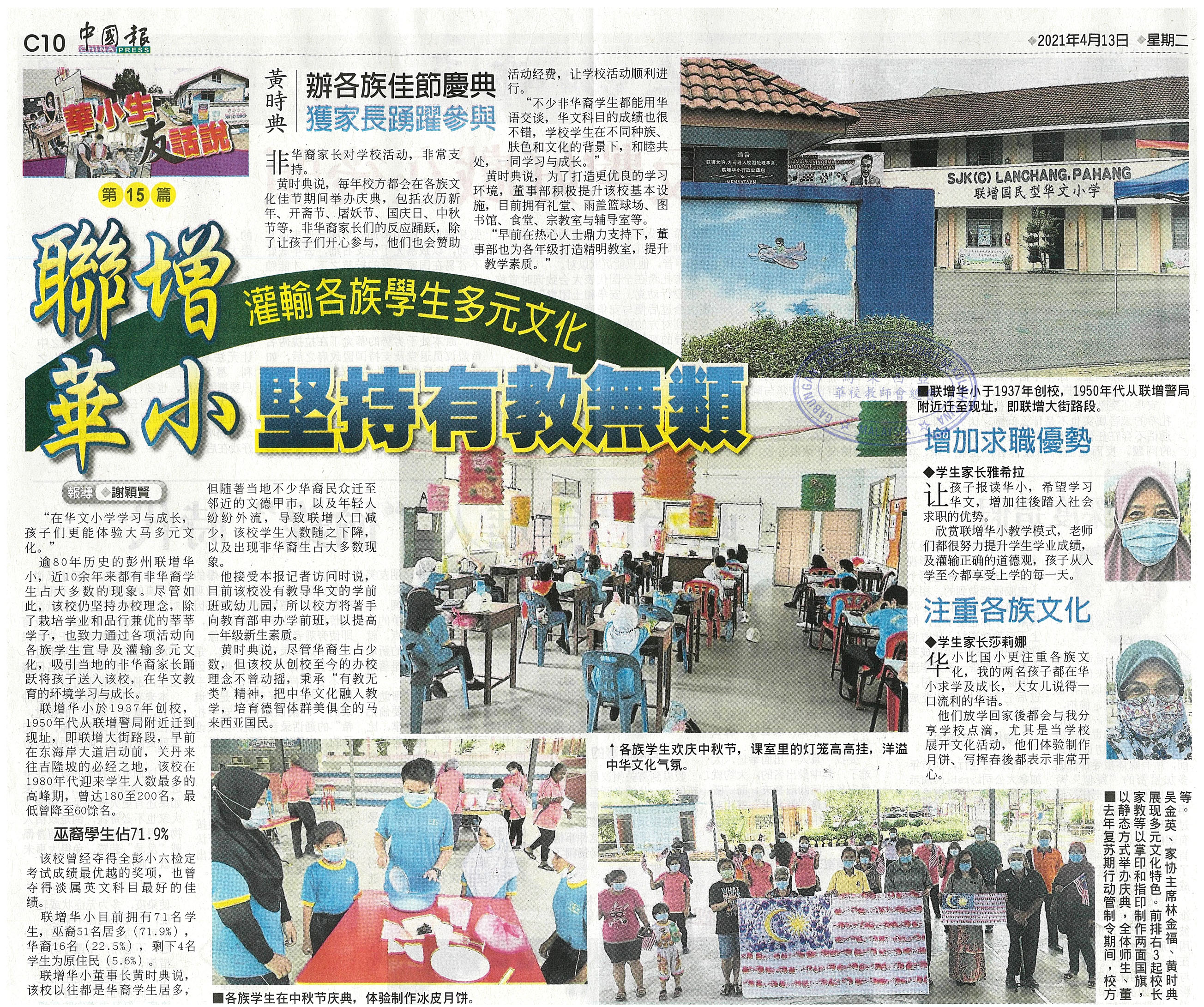 联增华小 灌输各族学生多元文化 坚持有教无类