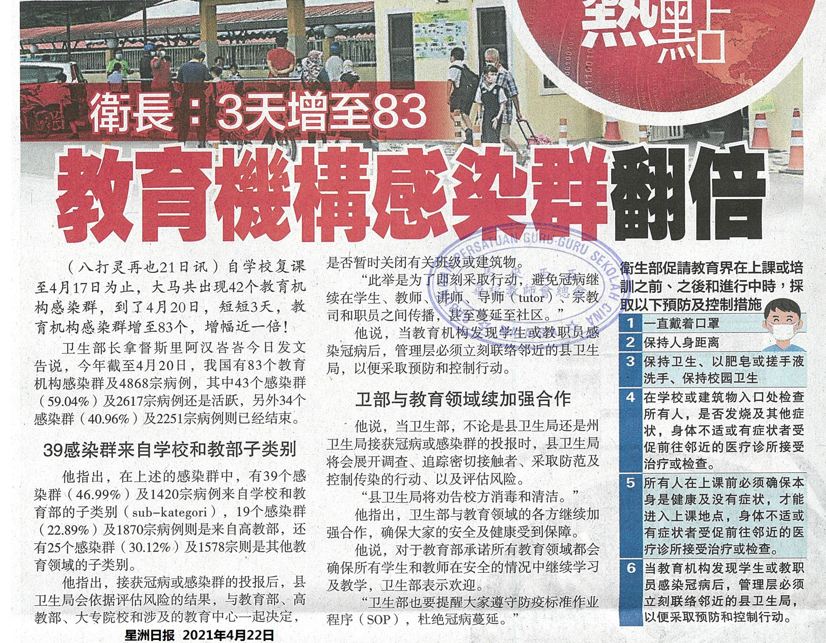 卫长:3天增至83 教育机构感染群翻倍