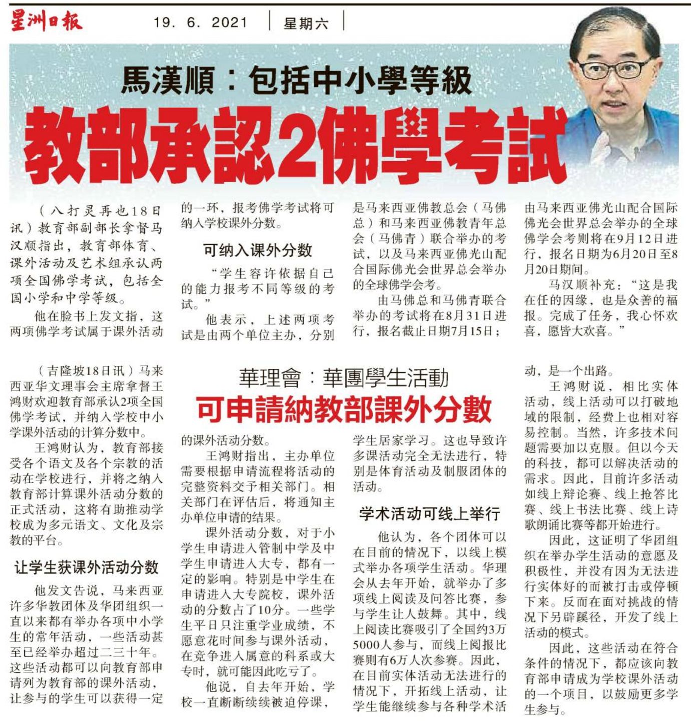 马汉顺:包括中小学等级 教育部承认2佛学考试