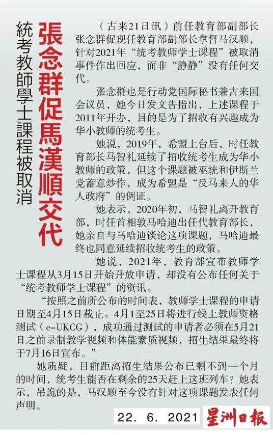 统考教师学士课程被取消 张念群促马汉顺交代