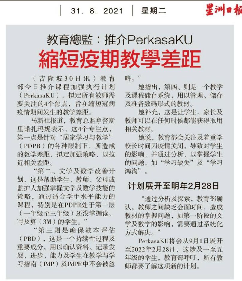 教育总监:推介PerkasaKU 缩短疫期教学差距