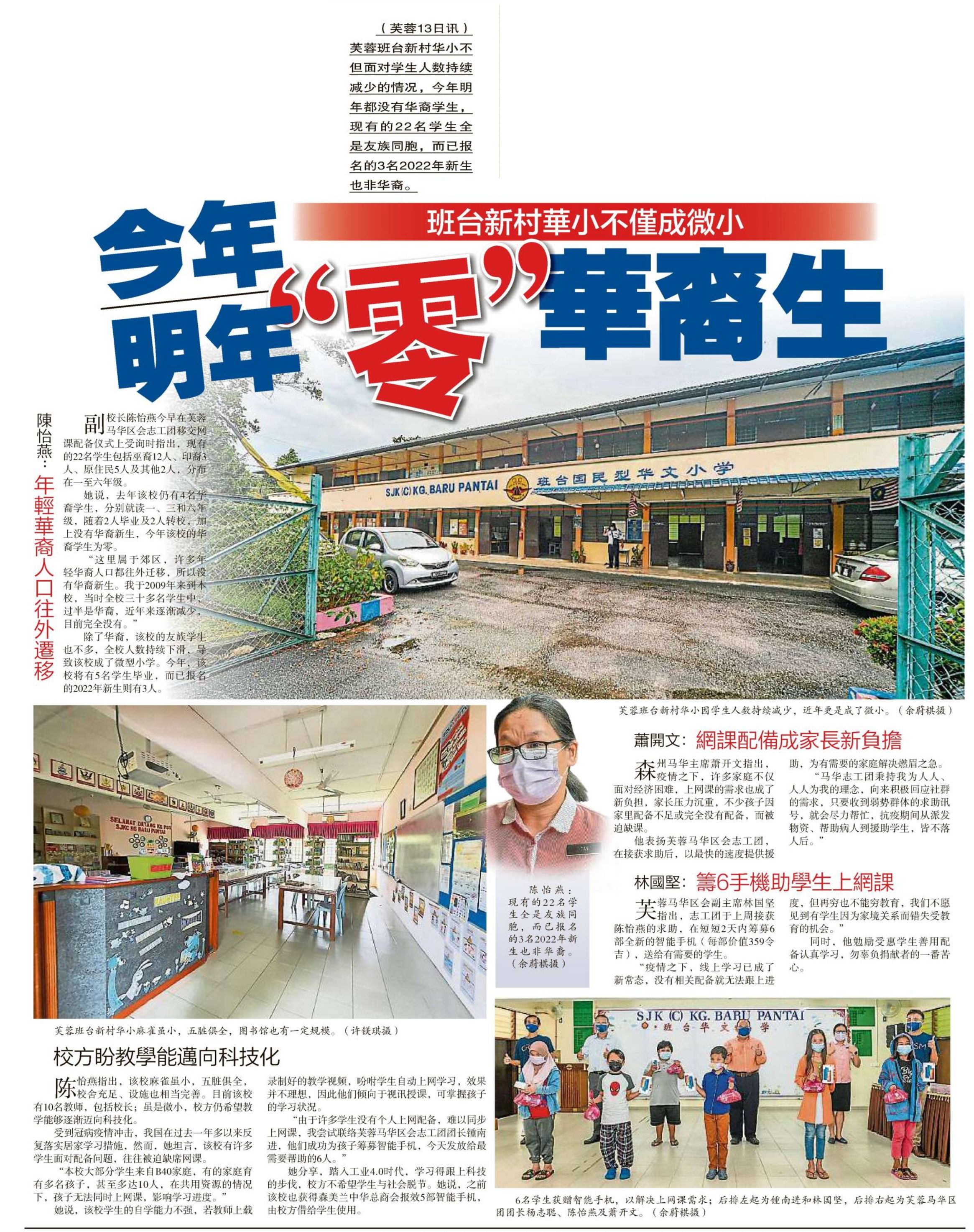 班台新村华小不仅成微小 今年明年“零”华裔生 WhatsApp 上一篇文章: 校方:做好10月返校准备 特教开课指南盼速公布 上一页 下一篇文章: 教长:依各州复苏阶段落实 10月3非全国全面复课 下一页