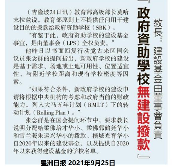 教长:建设基金由董事会负责 政府资助学校无建设拨款