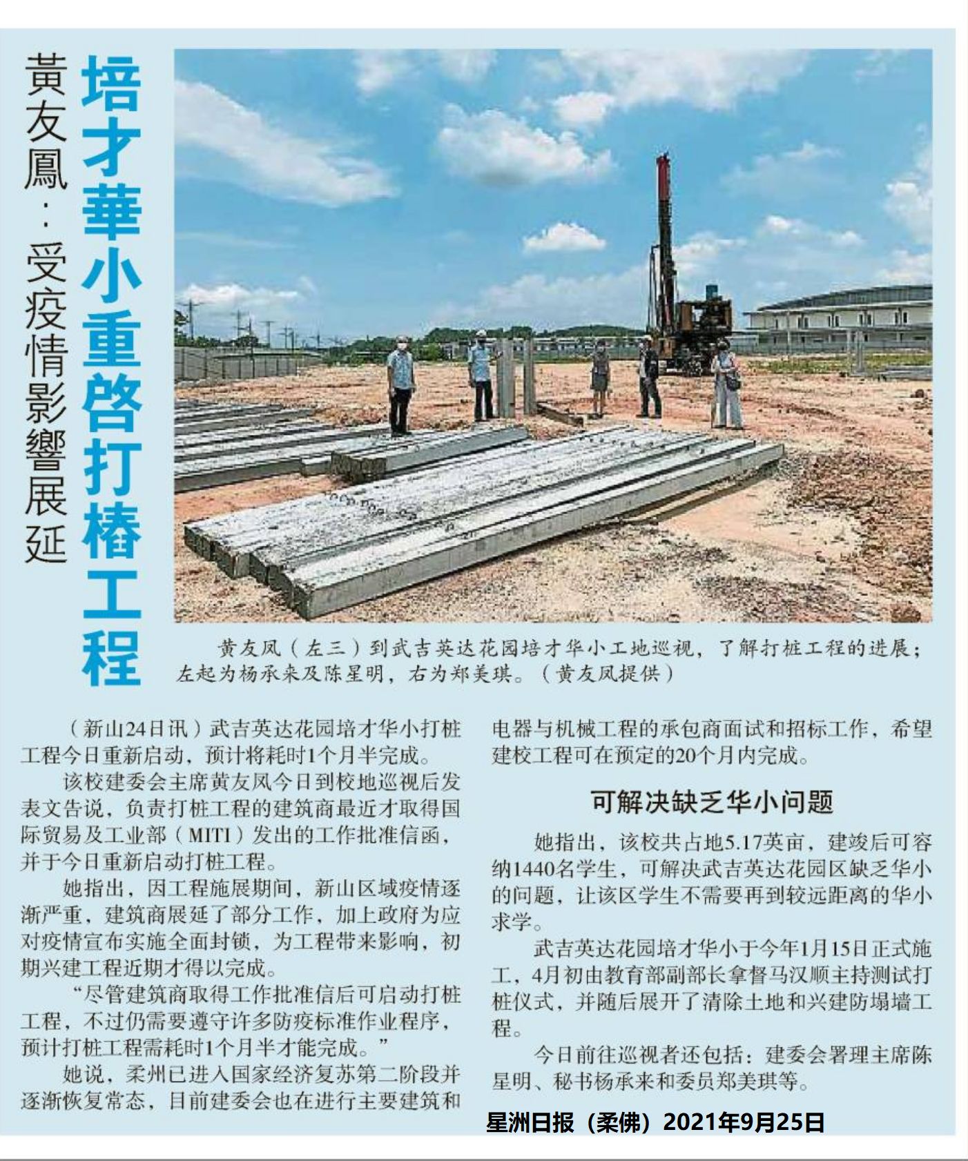 黄友凤:受疫情影响展延 培才华小重启打桩工程