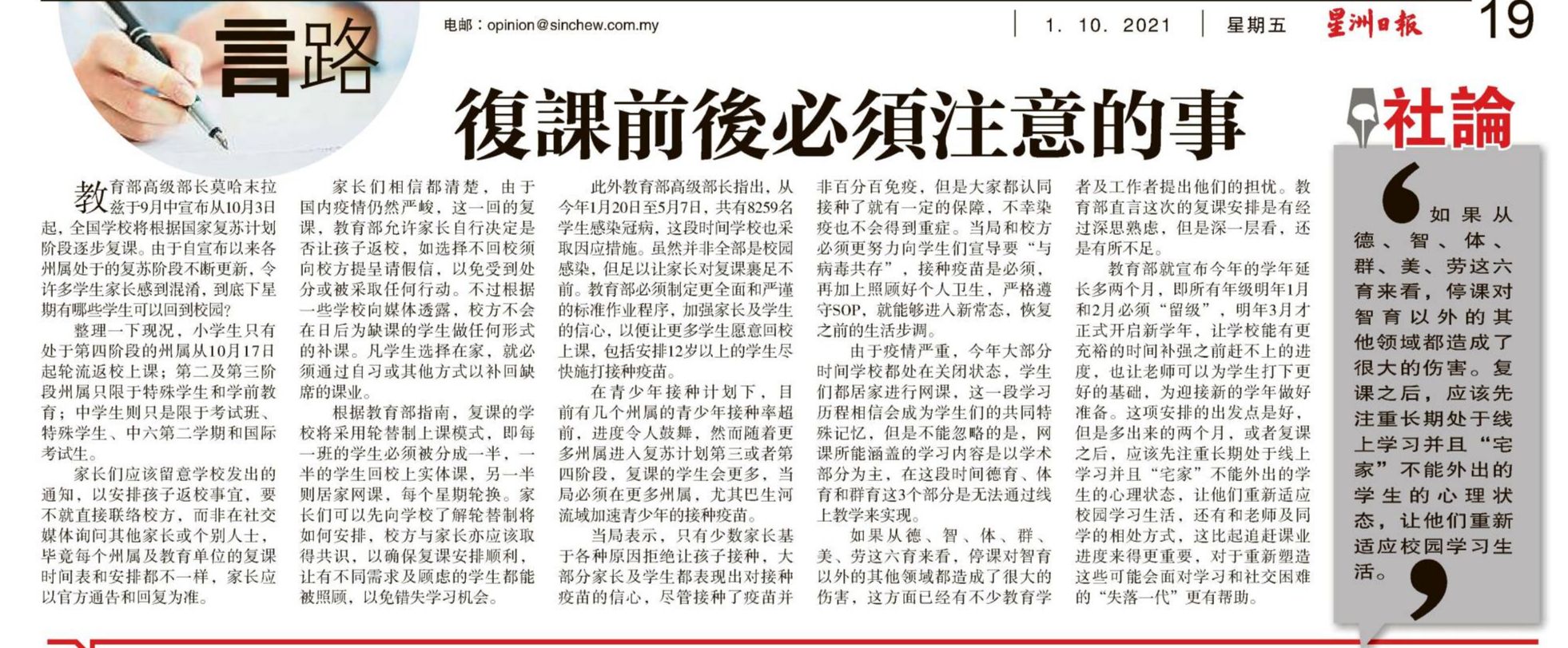下一篇文章: 教育部长:1月20日至5月7日 8259学生确诊