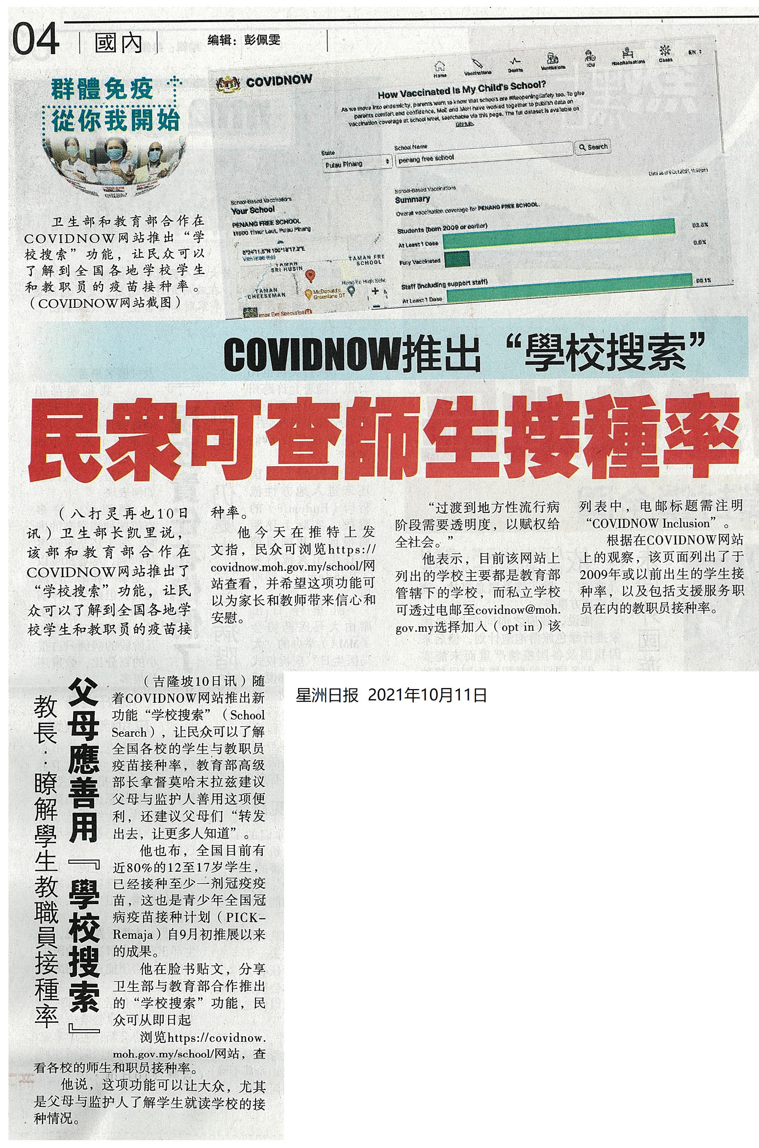 COVIDNOW推出“学校搜索” 民众可查师生接种率
