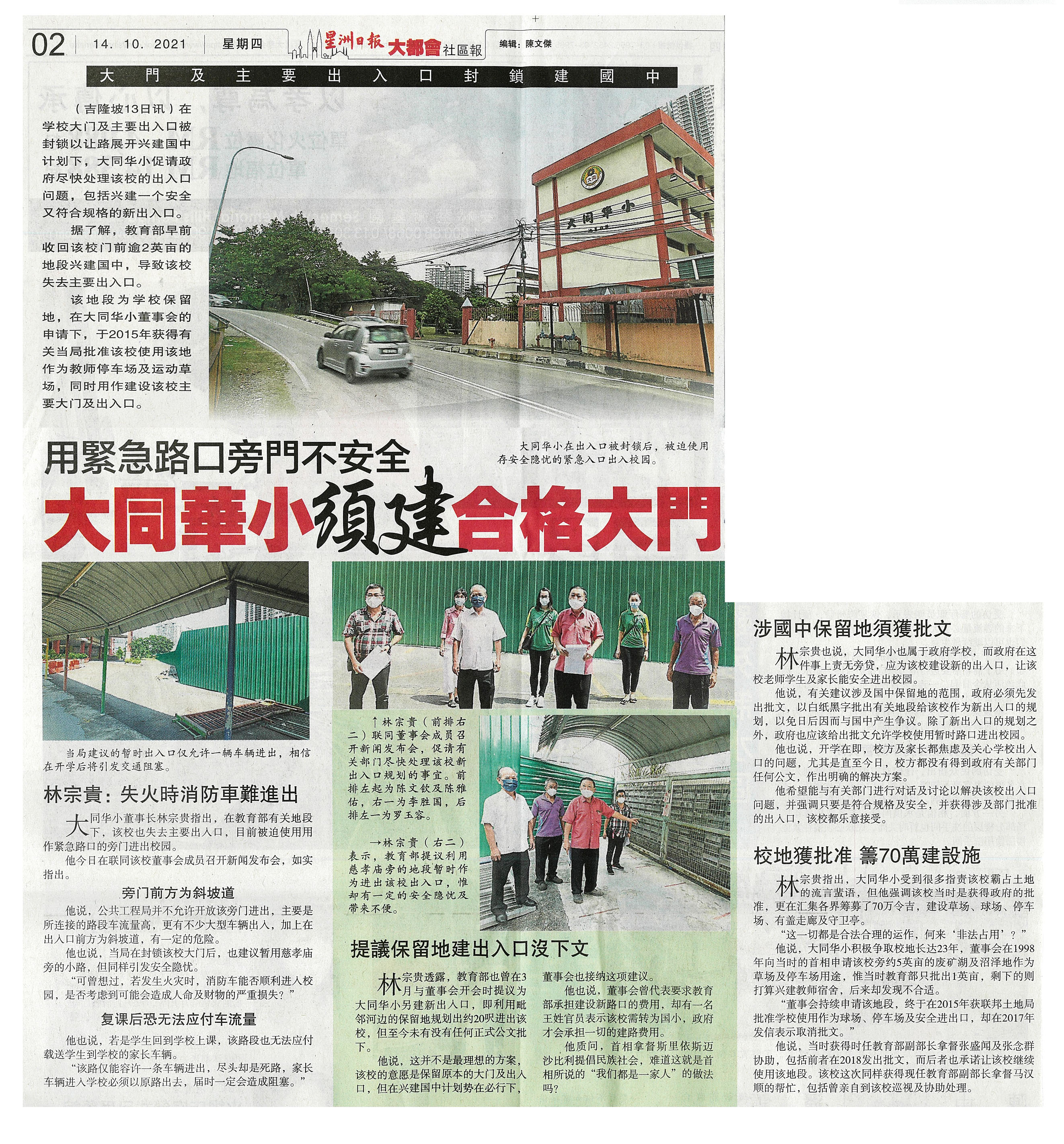 用紧急路口旁门不安全 大同华小须建合格大门 WhatsApp 上一篇文章: 统计局:去年生育率40年最低 华裔生育率1.5降至1 上一页 下一篇文章: 董总:遗憾有人意见偏颇“朝野拨款华教皆有感激” 下一页