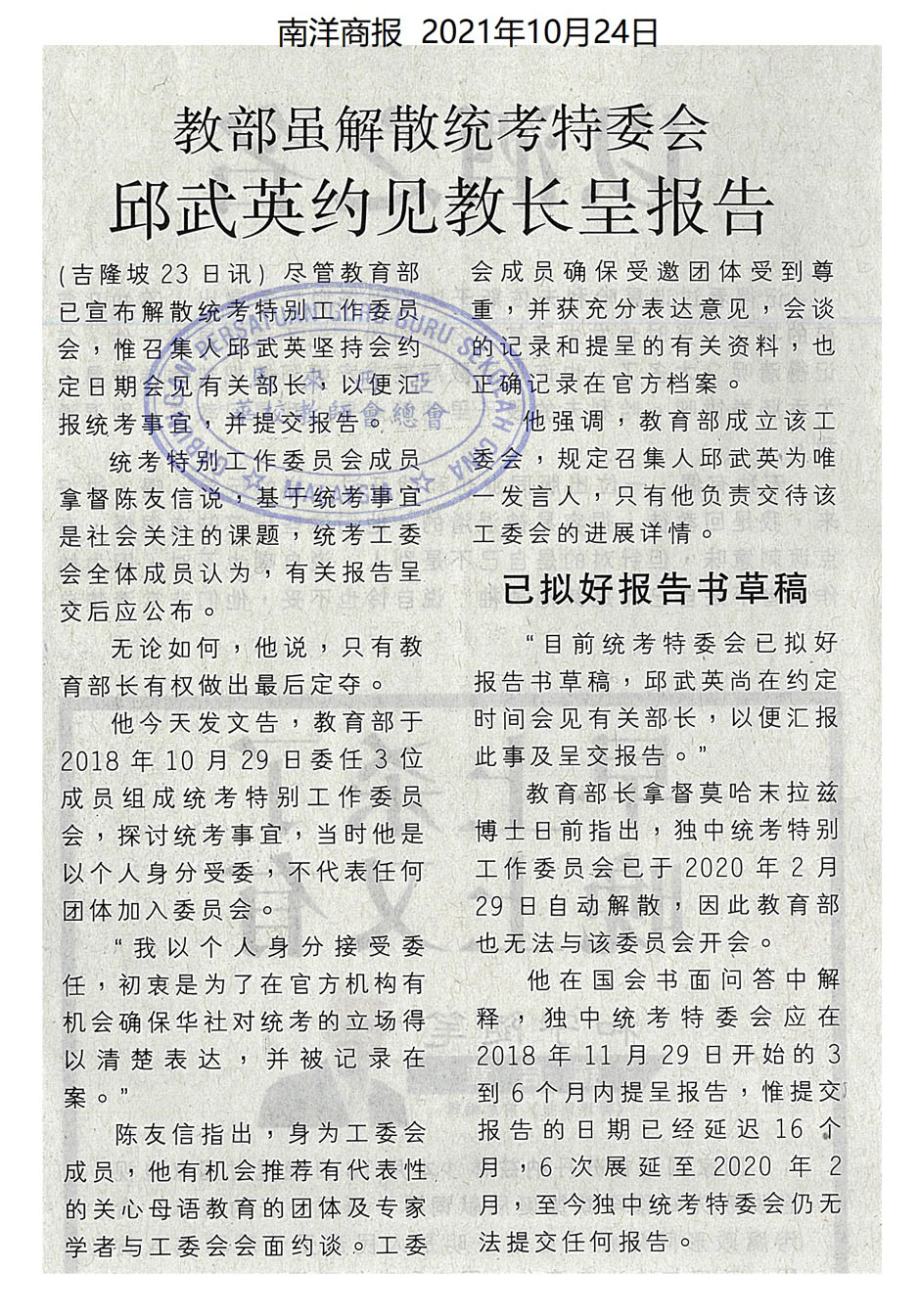 教部虽解散统考特委会 邱武英约见教长呈报告