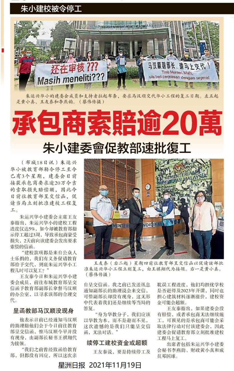 承包商索赔逾20万 朱运兴华小建委会促教育部速批复工 WhatsApp 上一篇文章: 马汉顺:商讨问题掌握资料 下周晤朱运兴华小2建委会 上一页 下一篇文章: “捍卫母语教育”签盖运动 延至30日吁华社响应 下一页
