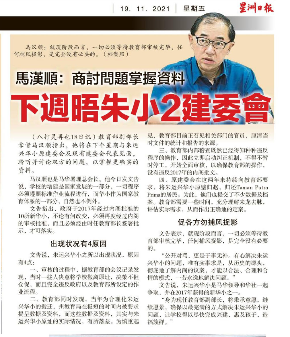 马汉顺:商讨问题掌握资料 下周晤朱运兴华小2建委会