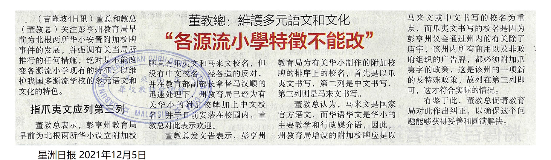 董教总:维护多元语文和文化 “各源流小学特征不能改”