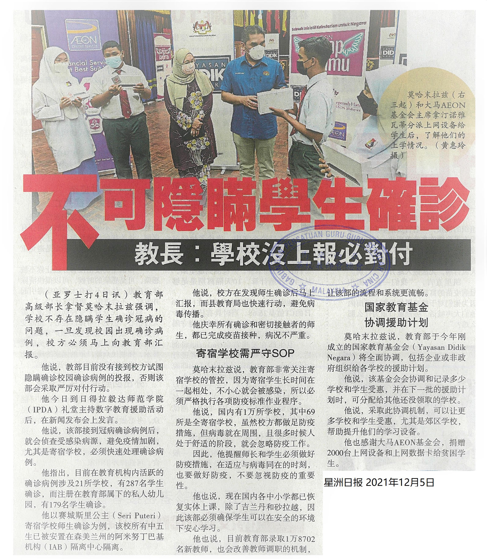 不可隐瞒学生确诊 教长:学校没上报必对付 WhatsApp 上一篇文章: 教长:450万学生上实体课 250人染疫比率极低 上一页 下一篇文章: 董教总:维护多元语文和文化 “各源流小学特征不能改” 下一页