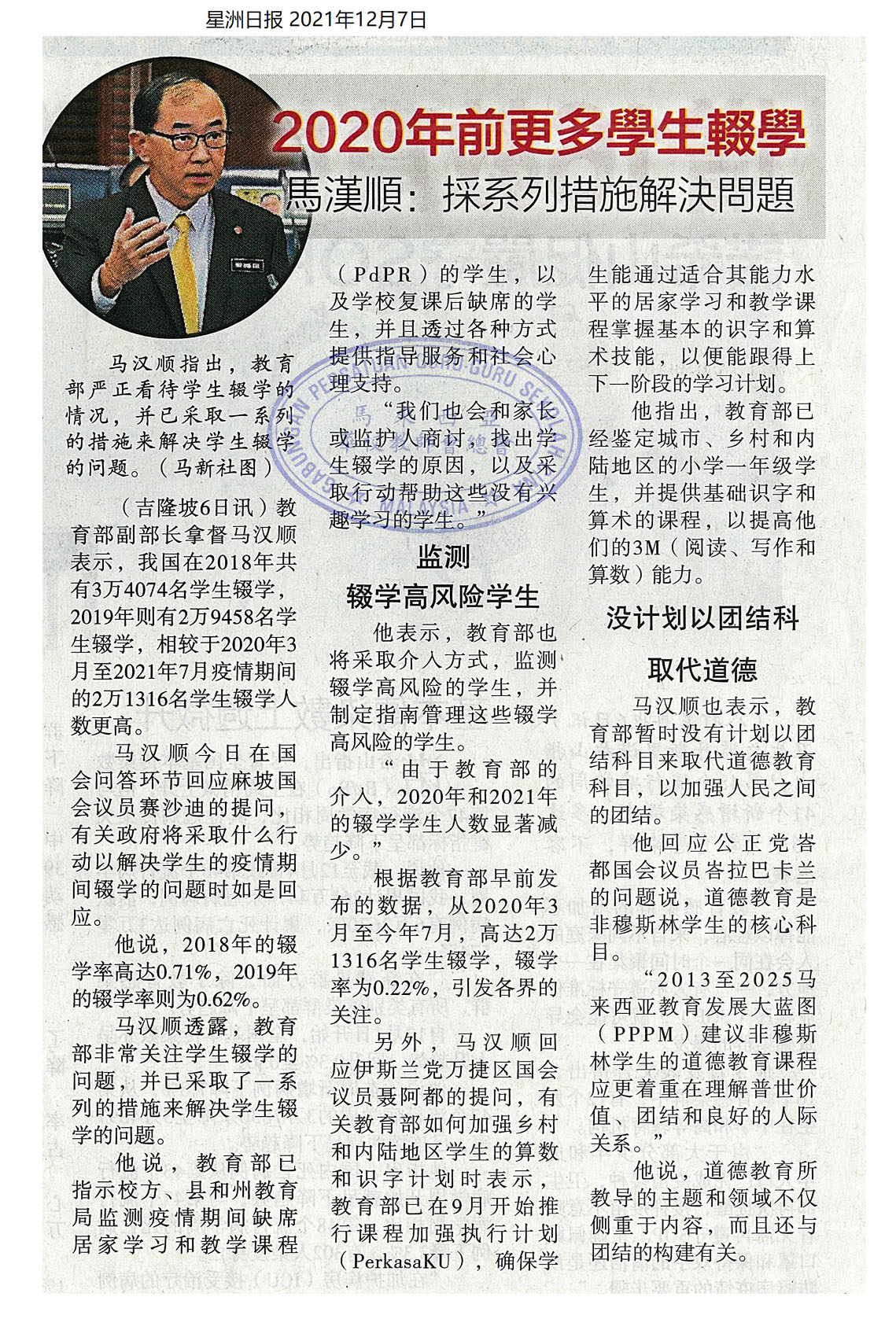马汉顺:2020年前更多学生辍学 采取系列措施解决问题 WhatsApp 上一篇文章: 董教总:1月3报到影响行政教学 学期未完教师转校欠妥 上一页 下一篇文章: 教师:不符小学生水平 再批国语“难到要死” 下一页