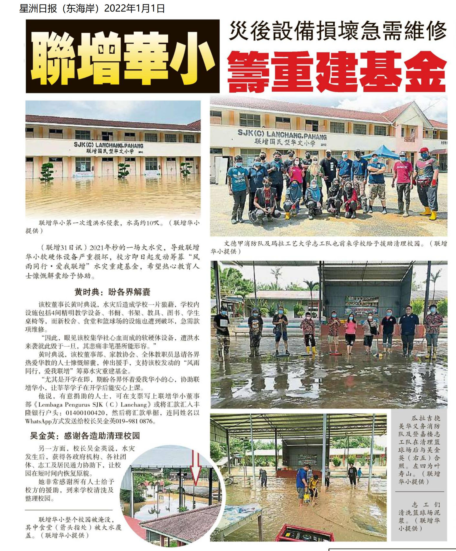 联增华小灾后设备损坏急需维修 筹重建基金