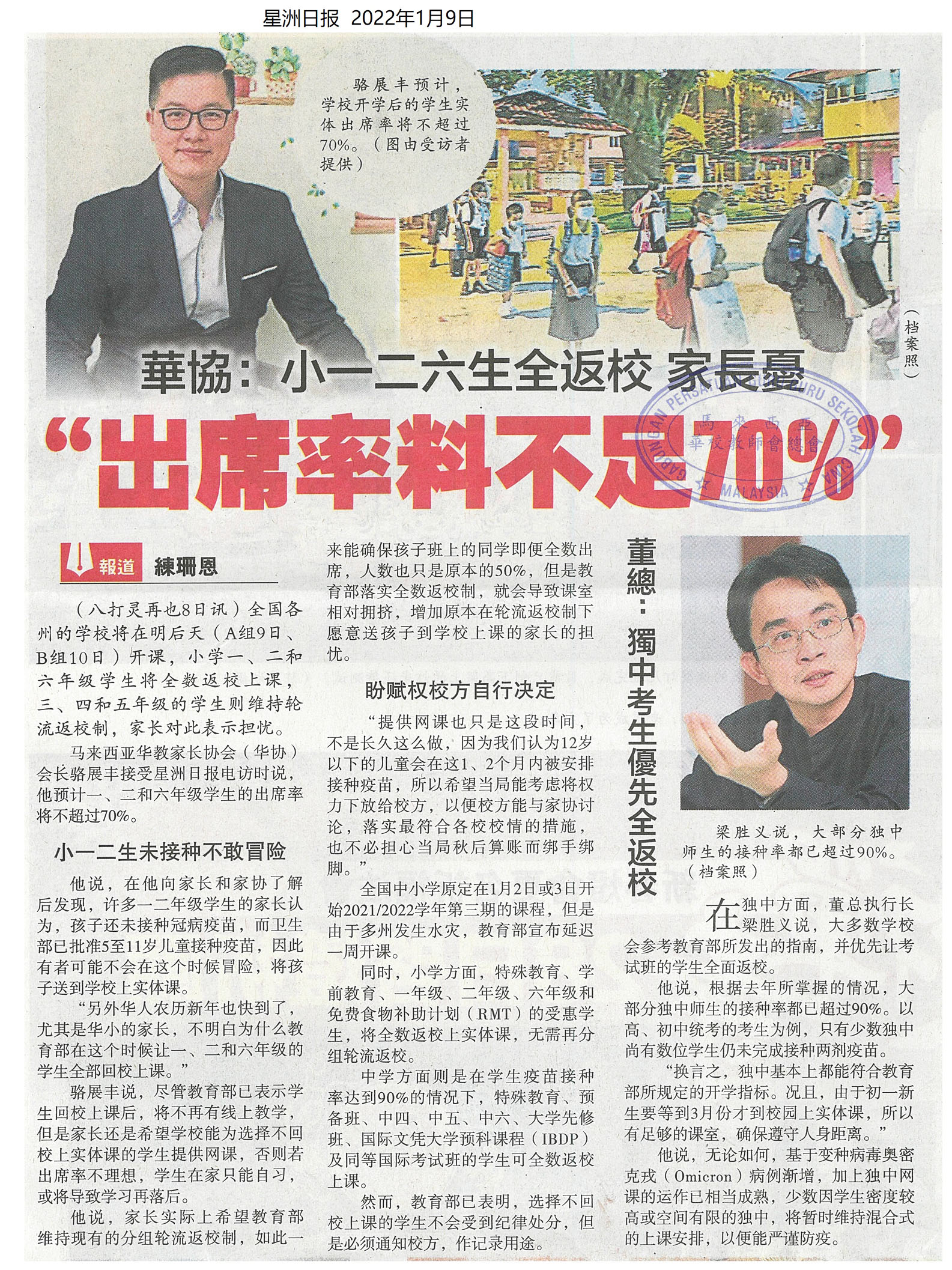 华协:小一二六生全返校 家长忧“出席率料不足70%”