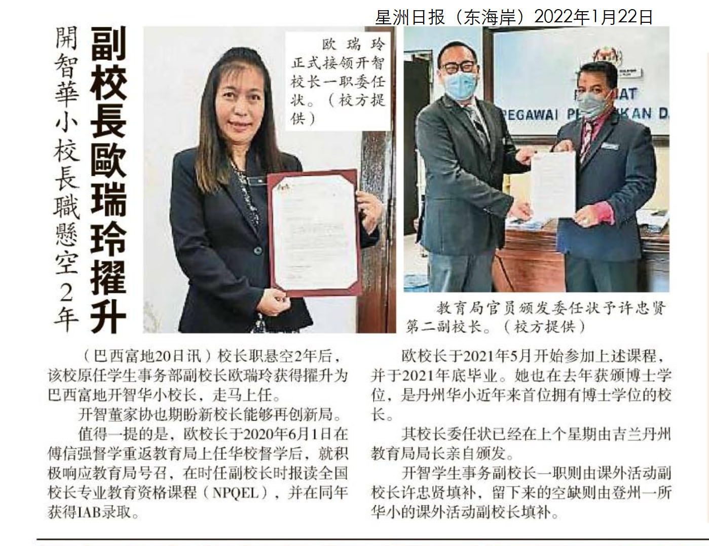 开智华小校长悬空2年 副校长欧瑞玲擢升