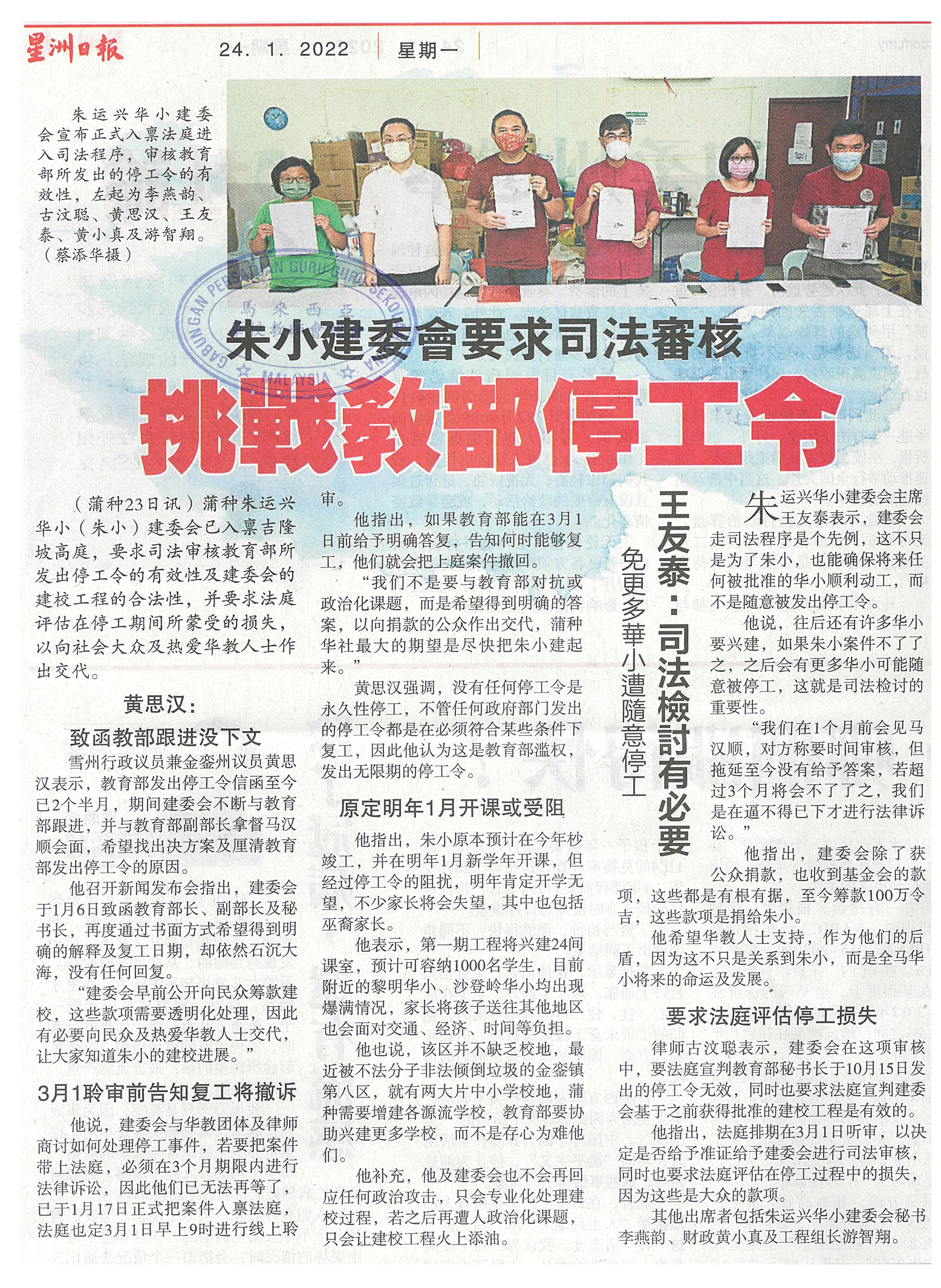 朱小建委会要求司法审核 挑战教部停工令