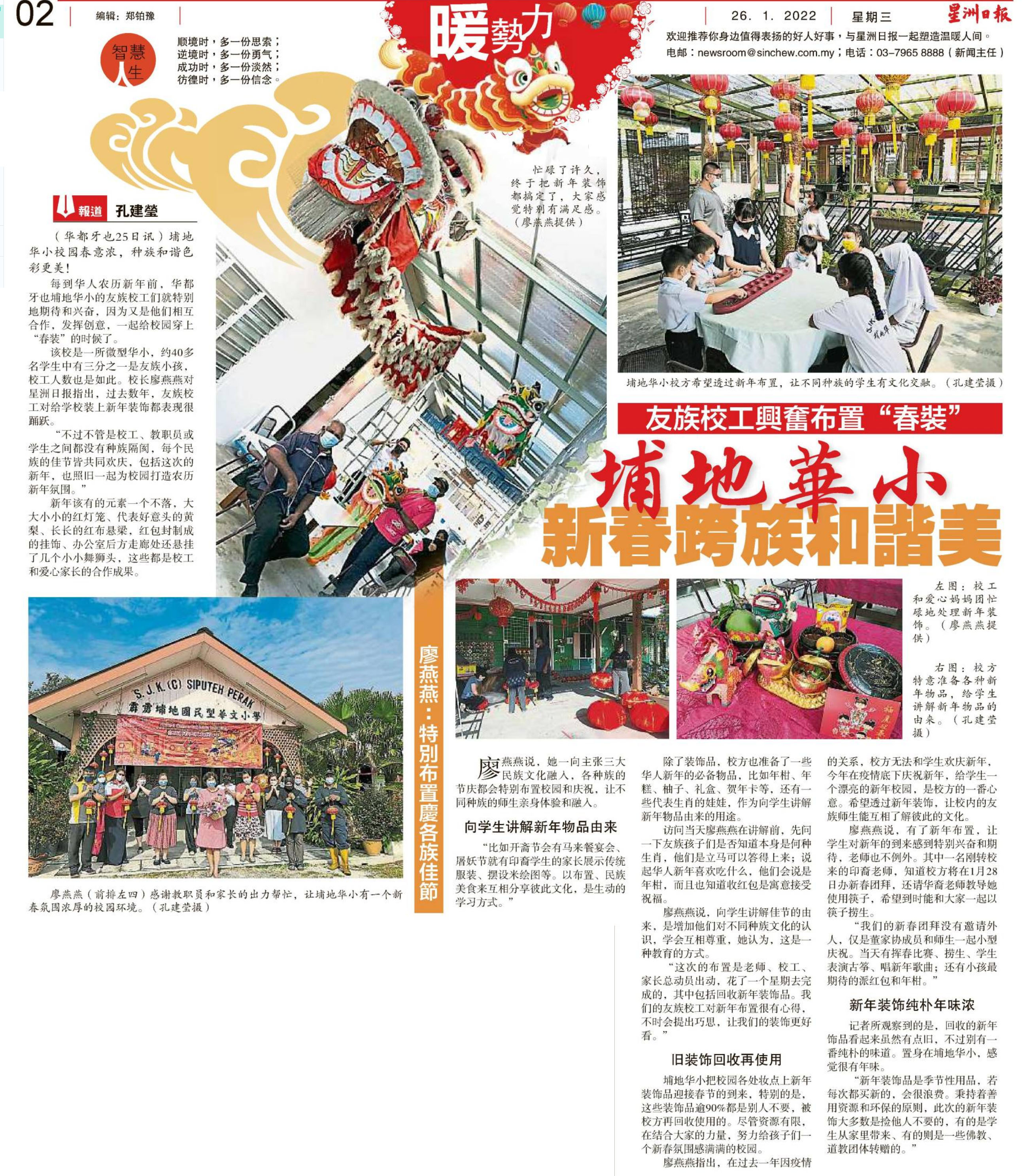 友族校工兴奋布置“春装” 埔地华小新春跨族和谐美
