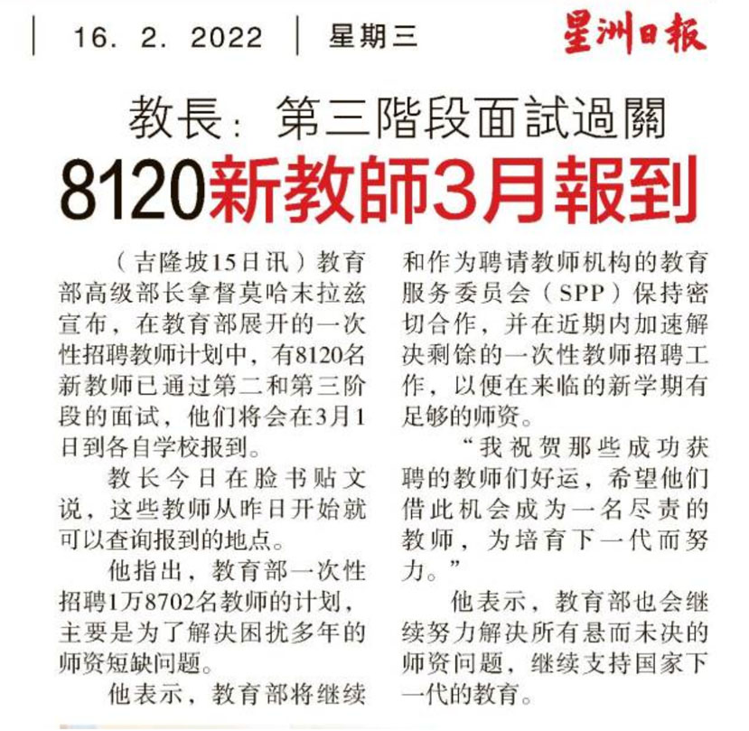 教长:第三阶段面试过关 8120新教师3月报到