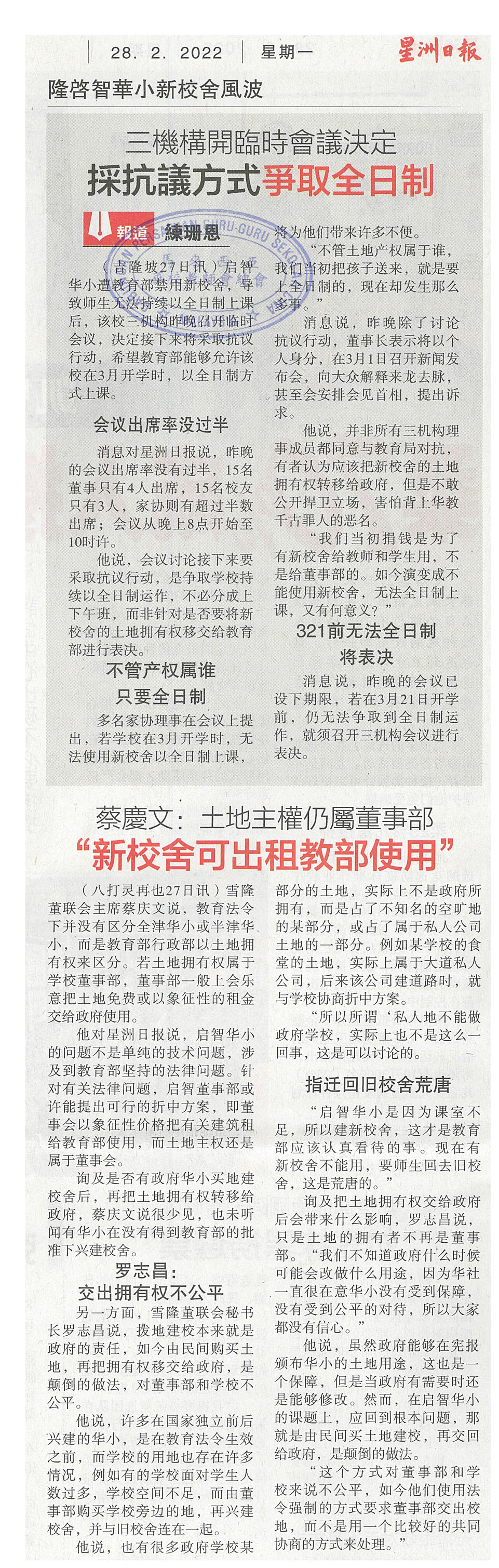 下一篇文章: 巴生滨华中学代表4独中 申请新独中地段建分校