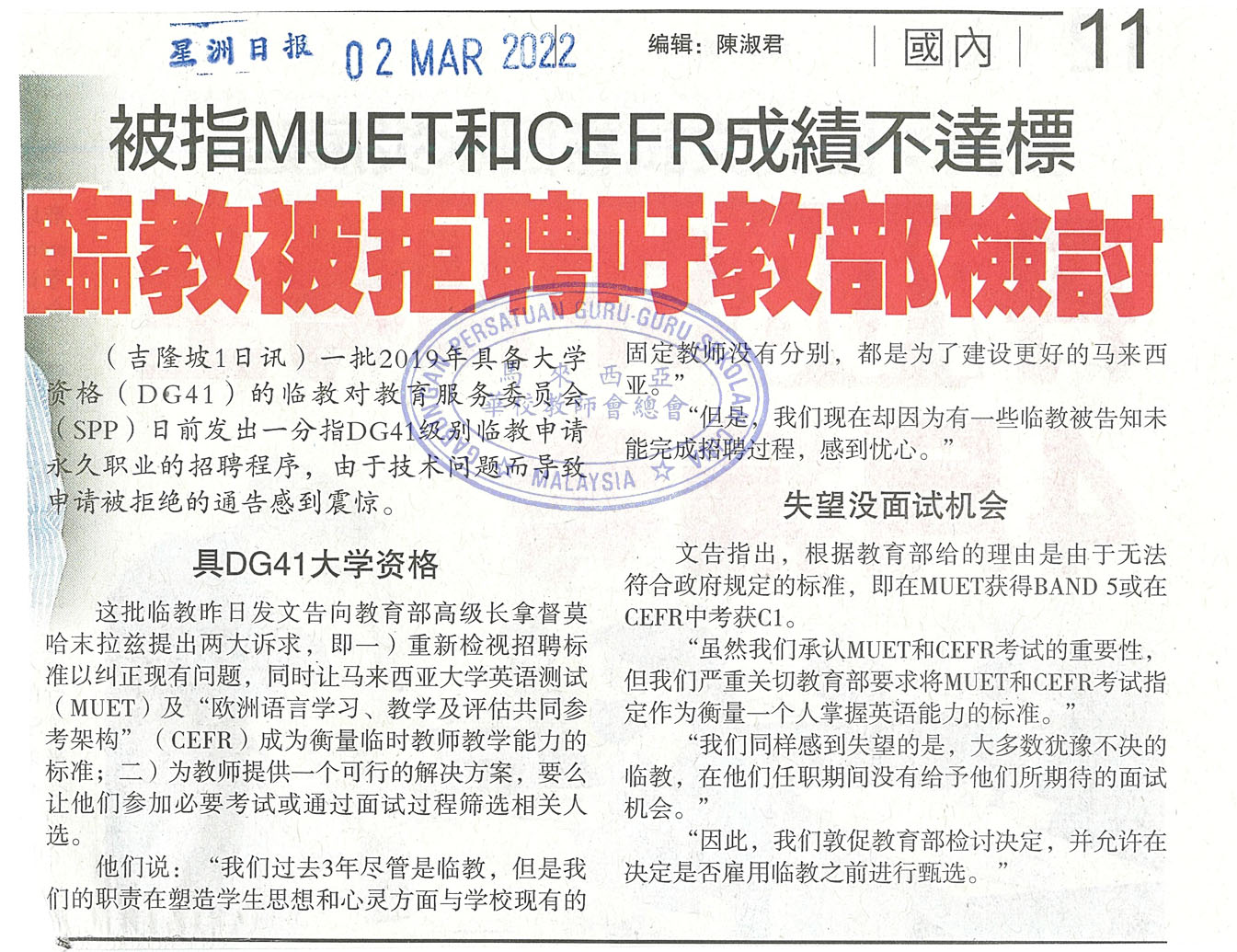 被指MUET和CEFR成绩不达标 临教被拒聘吁教育部检讨