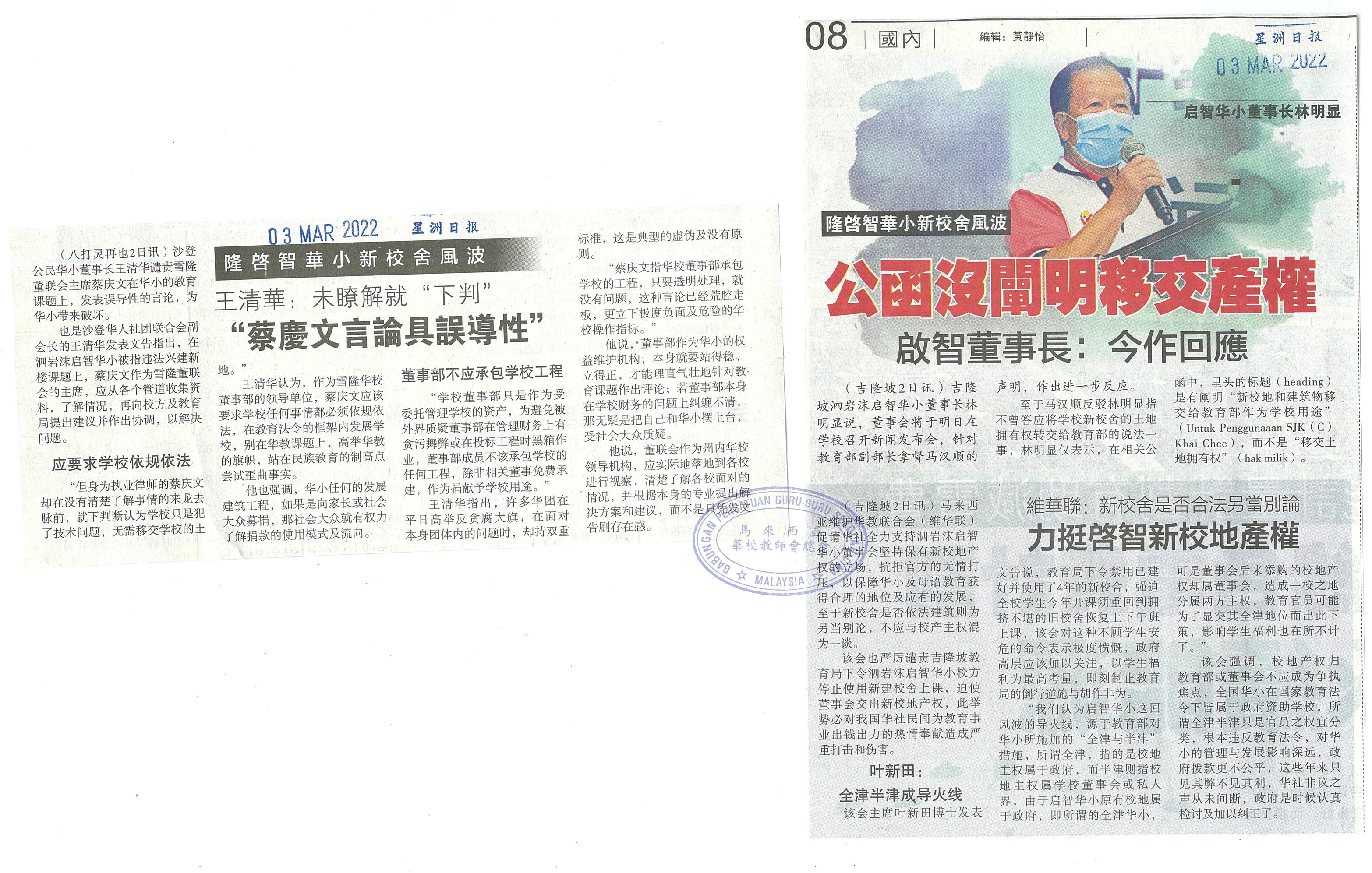 上一篇文章: 黄思汉:不宜详谈 由大臣公布新独中详情