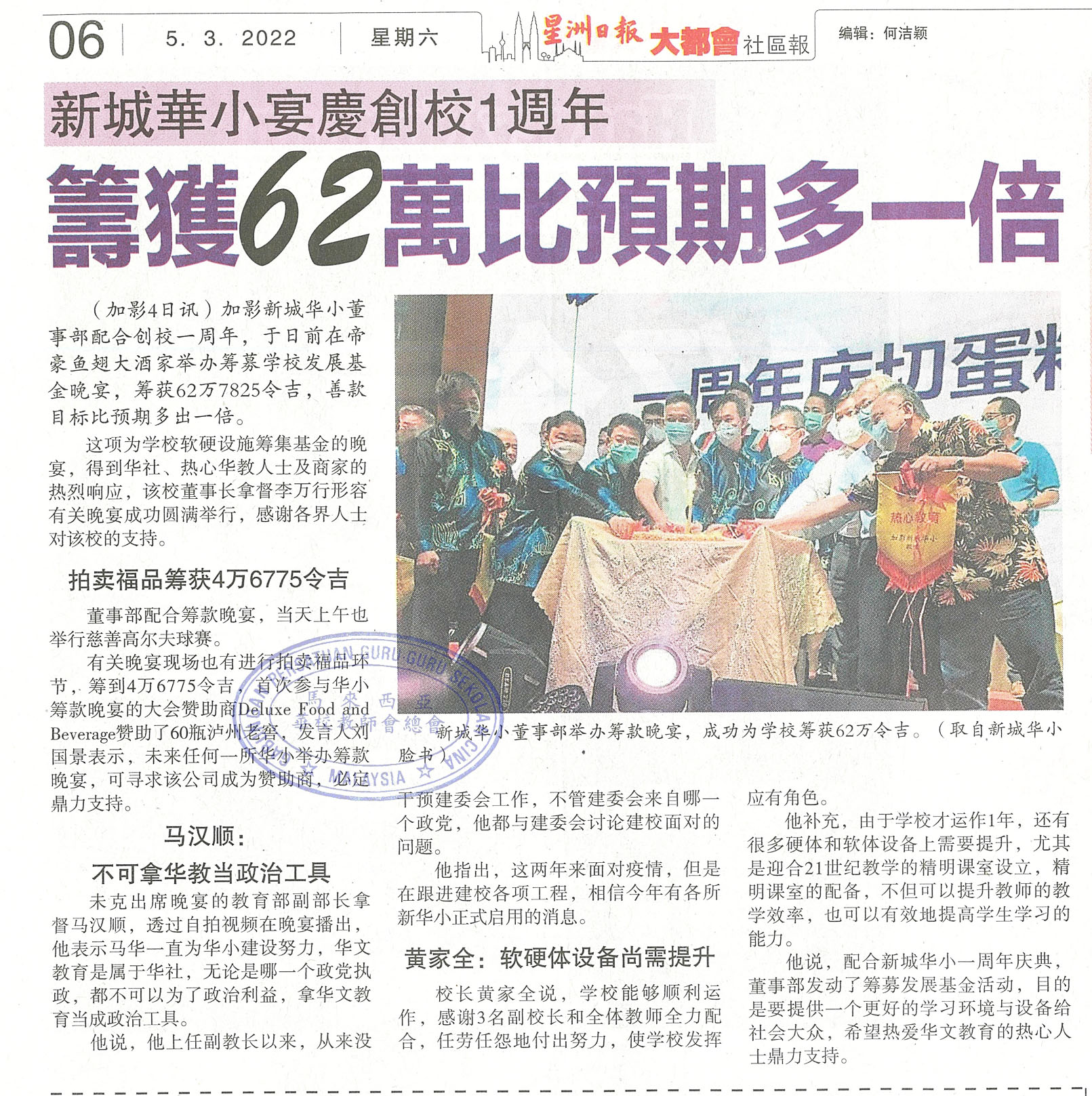 加影新城华小宴庆创校1周年 筹获62万比预期多一倍