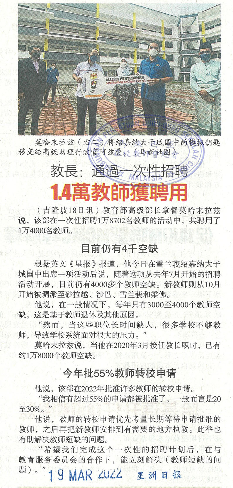教长:通过一次性招聘 1.4万教师获聘用