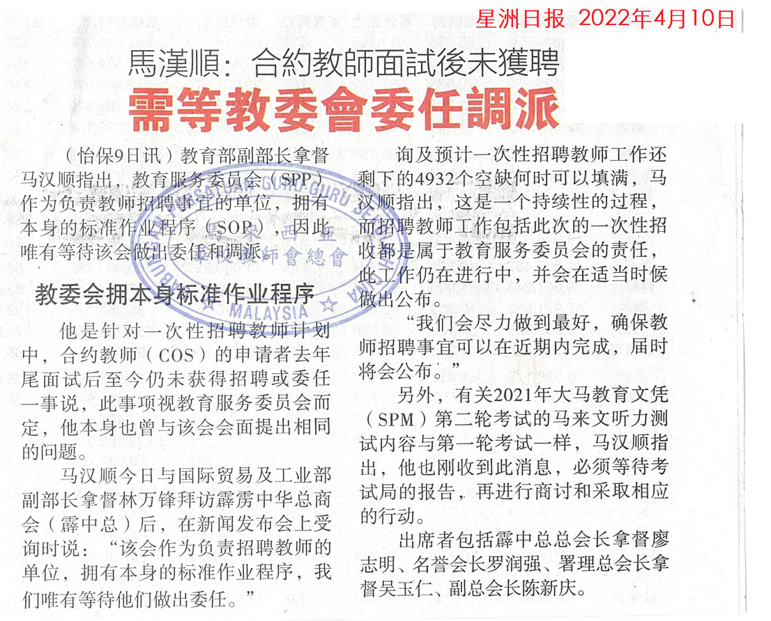 马汉顺:合约教师面试后未获聘 需等教委会委任调派