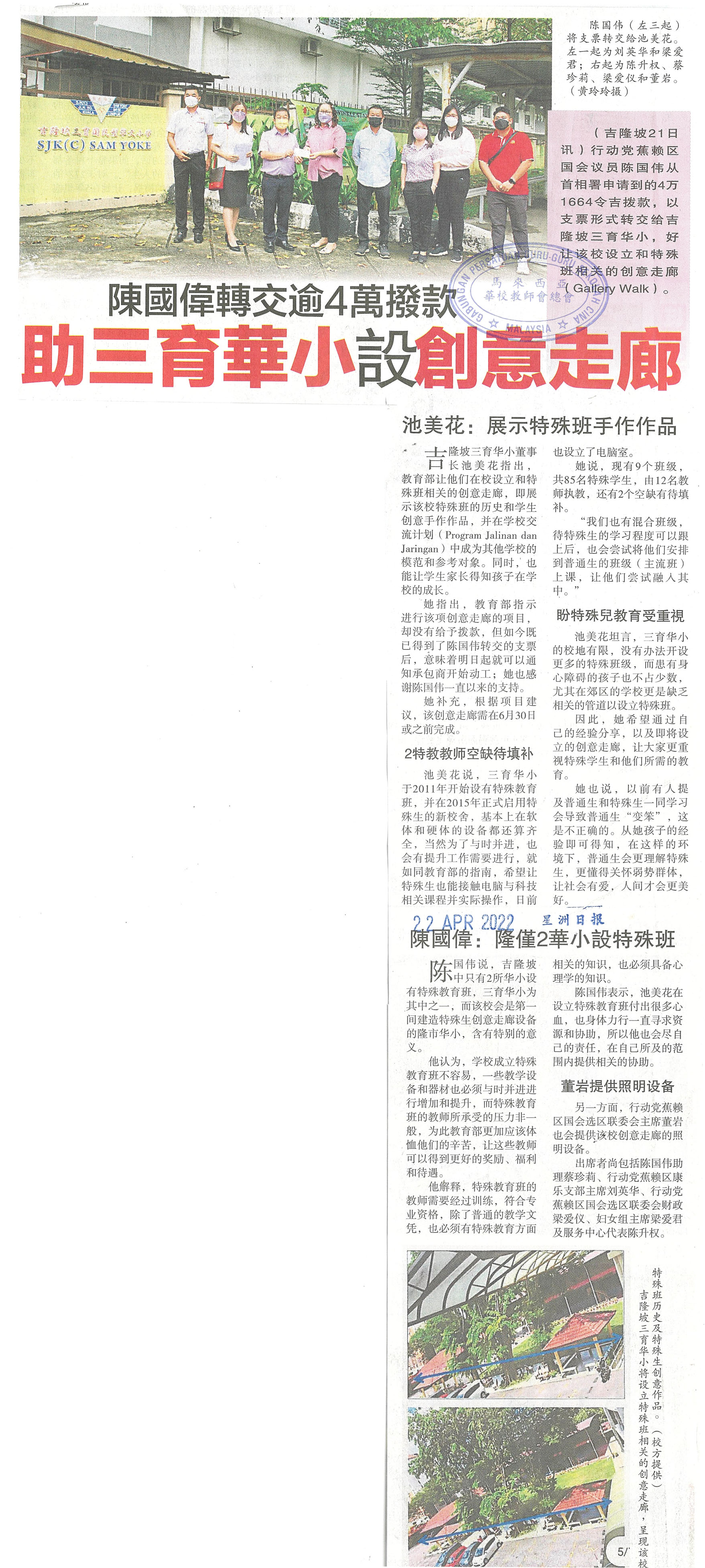 陈国伟转交逾4万拨款 助三育华小设创意走廊